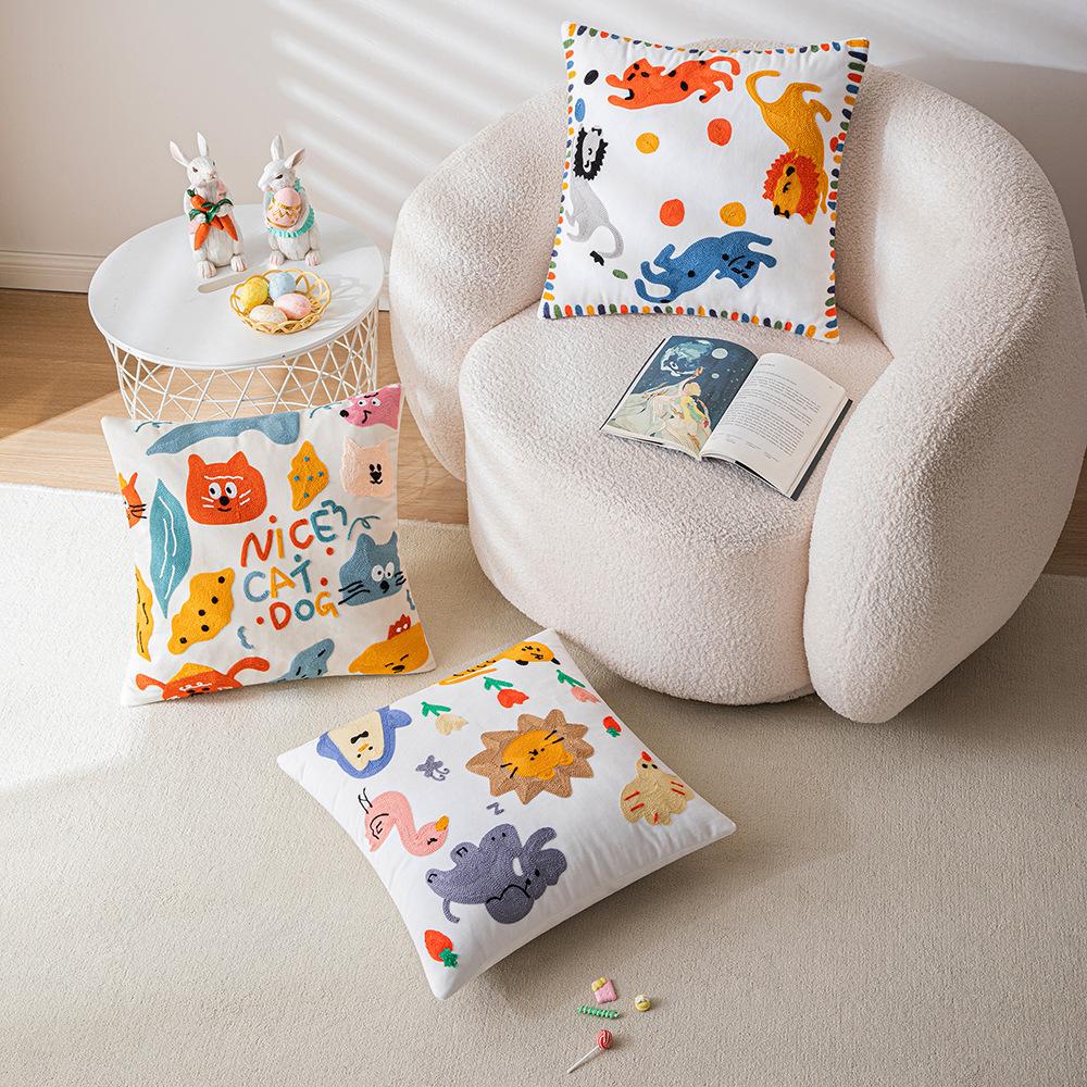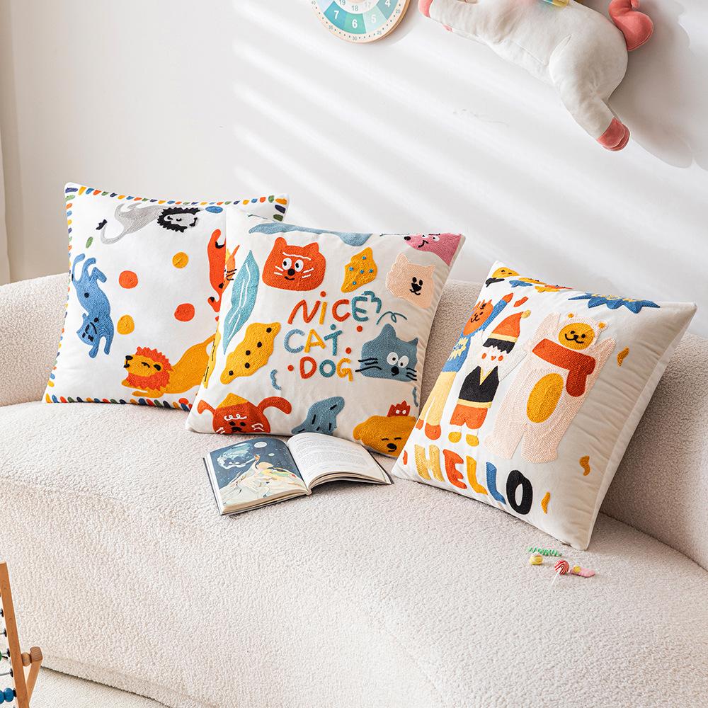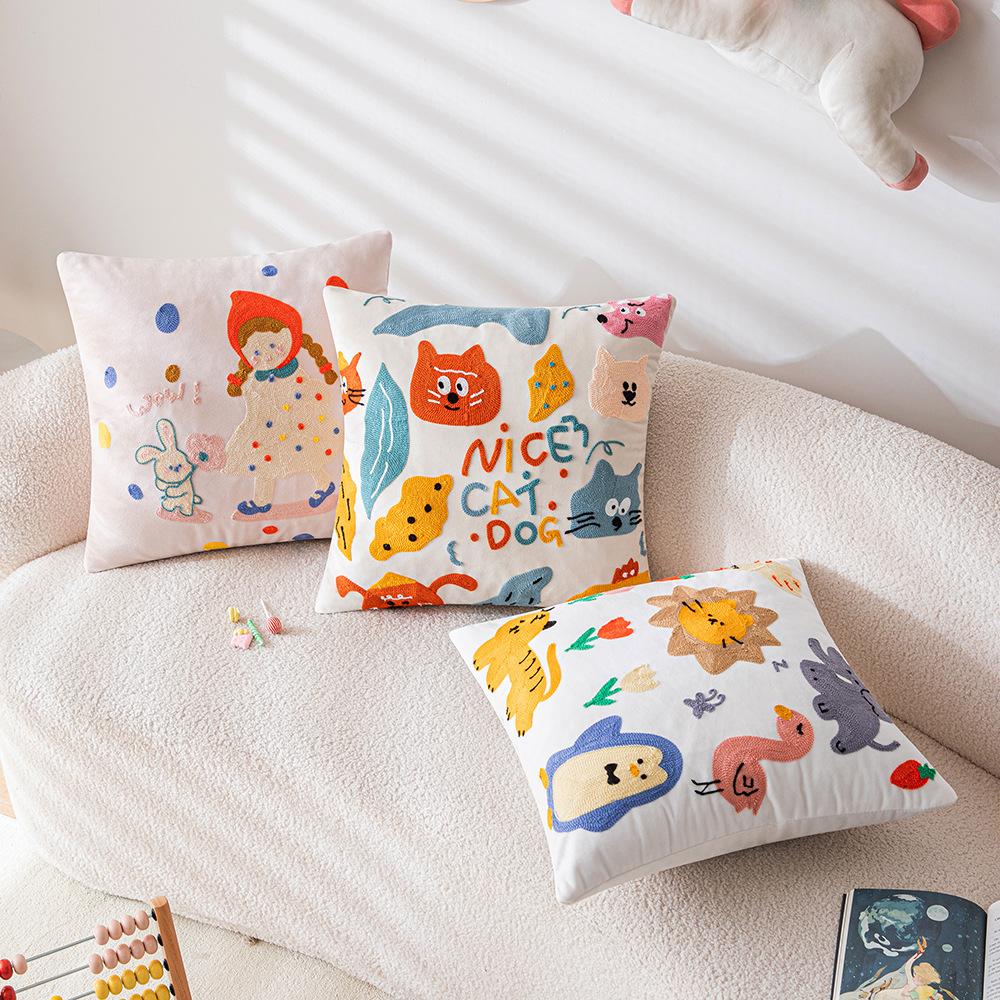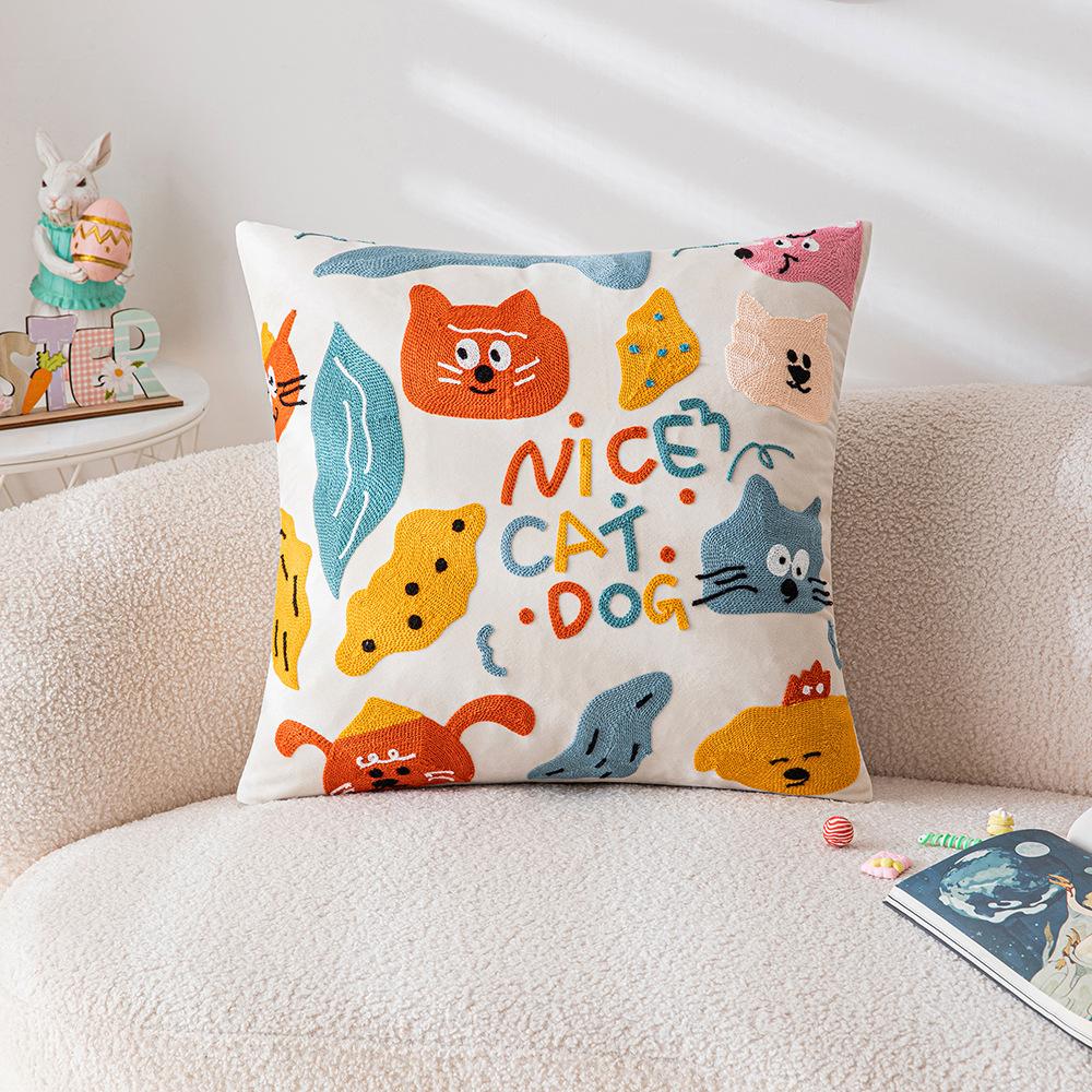 Милая мультяшная вышитая наволочка для подушки, диван для гостиной, детская комната, прикроватная подушка, подушка с животным, подушка с кошкой