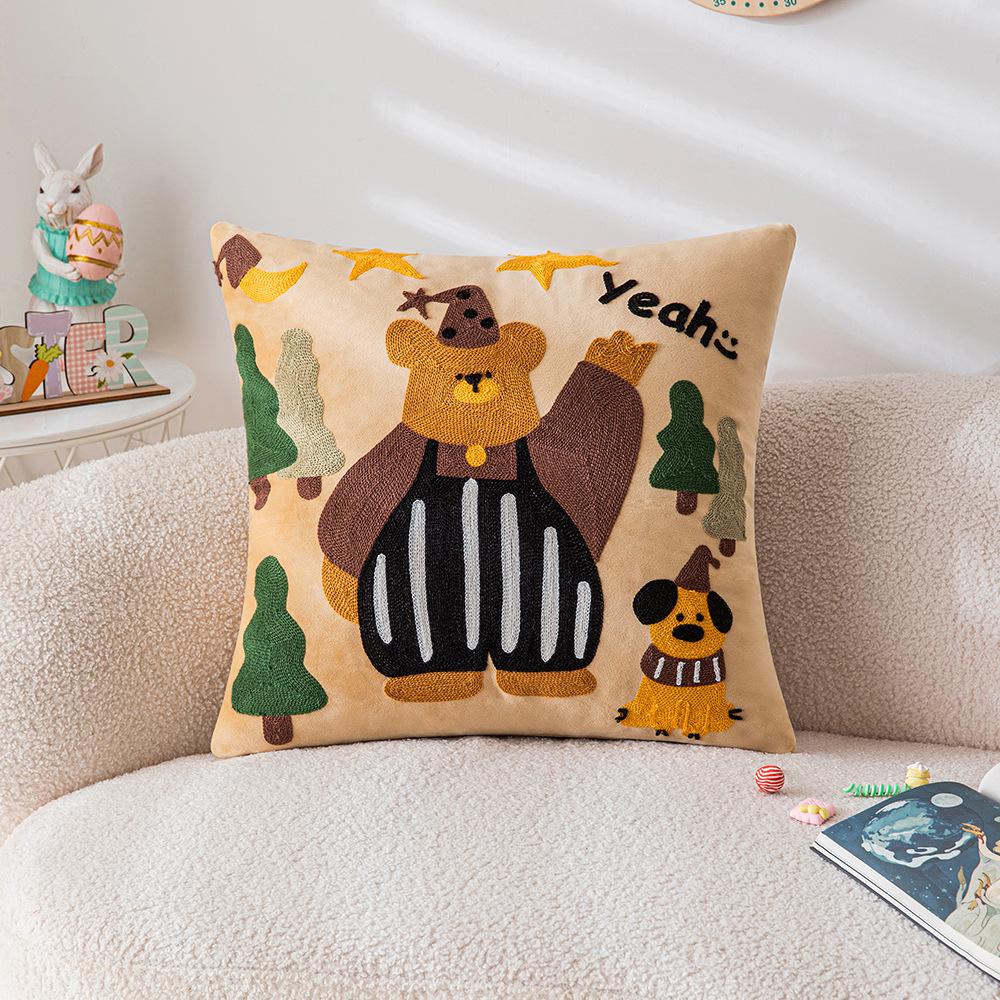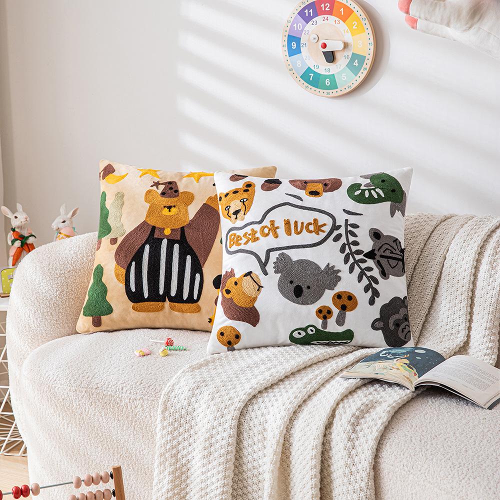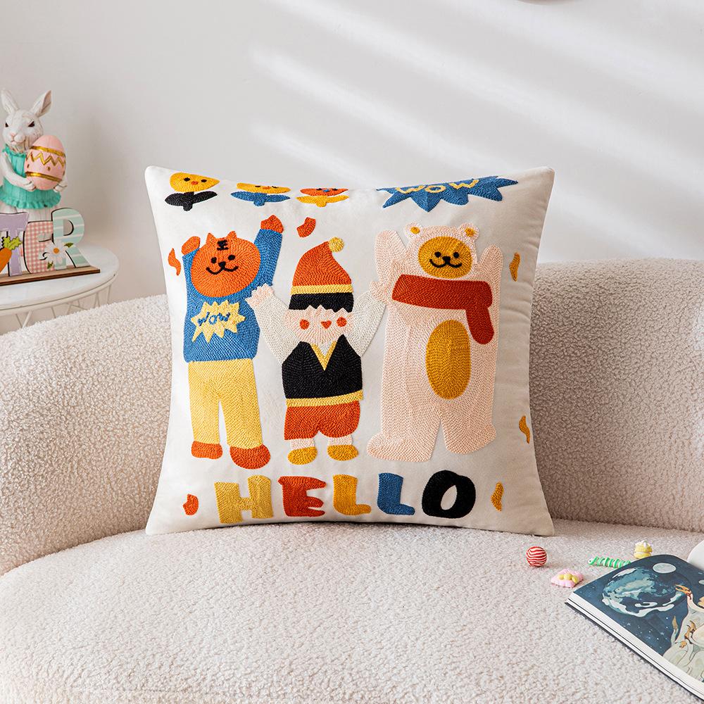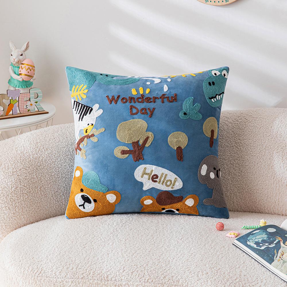 Милая мультяшная вышитая наволочка для подушки, диван для гостиной, детская комната, прикроватная подушка, подушка с животным, подушка с кошкой