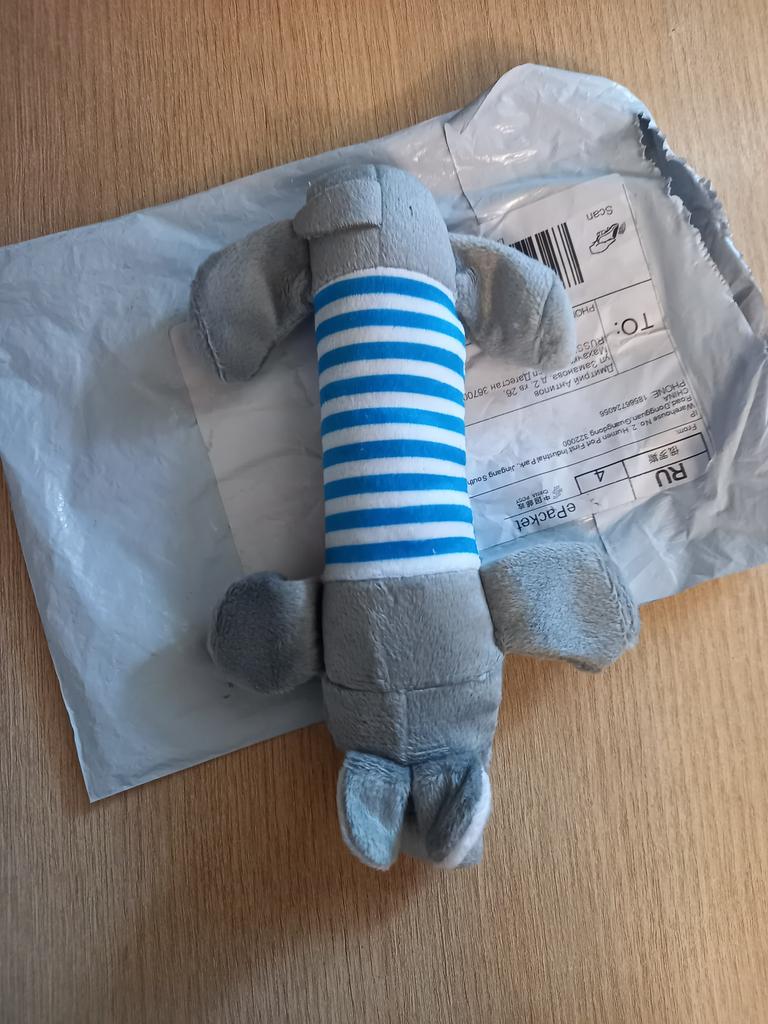 Замечательная смешная игрушка для моей собаки, нет посторонних запахов пищит, собака постоянно играет с ней и даже спит, спасибо большое продавцу, я очень рада, что выиграла этот приз!!!