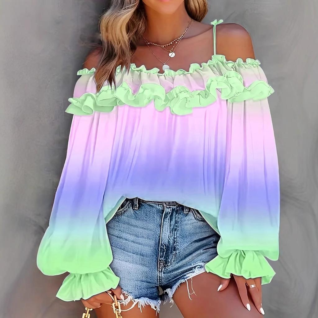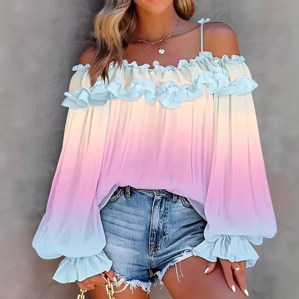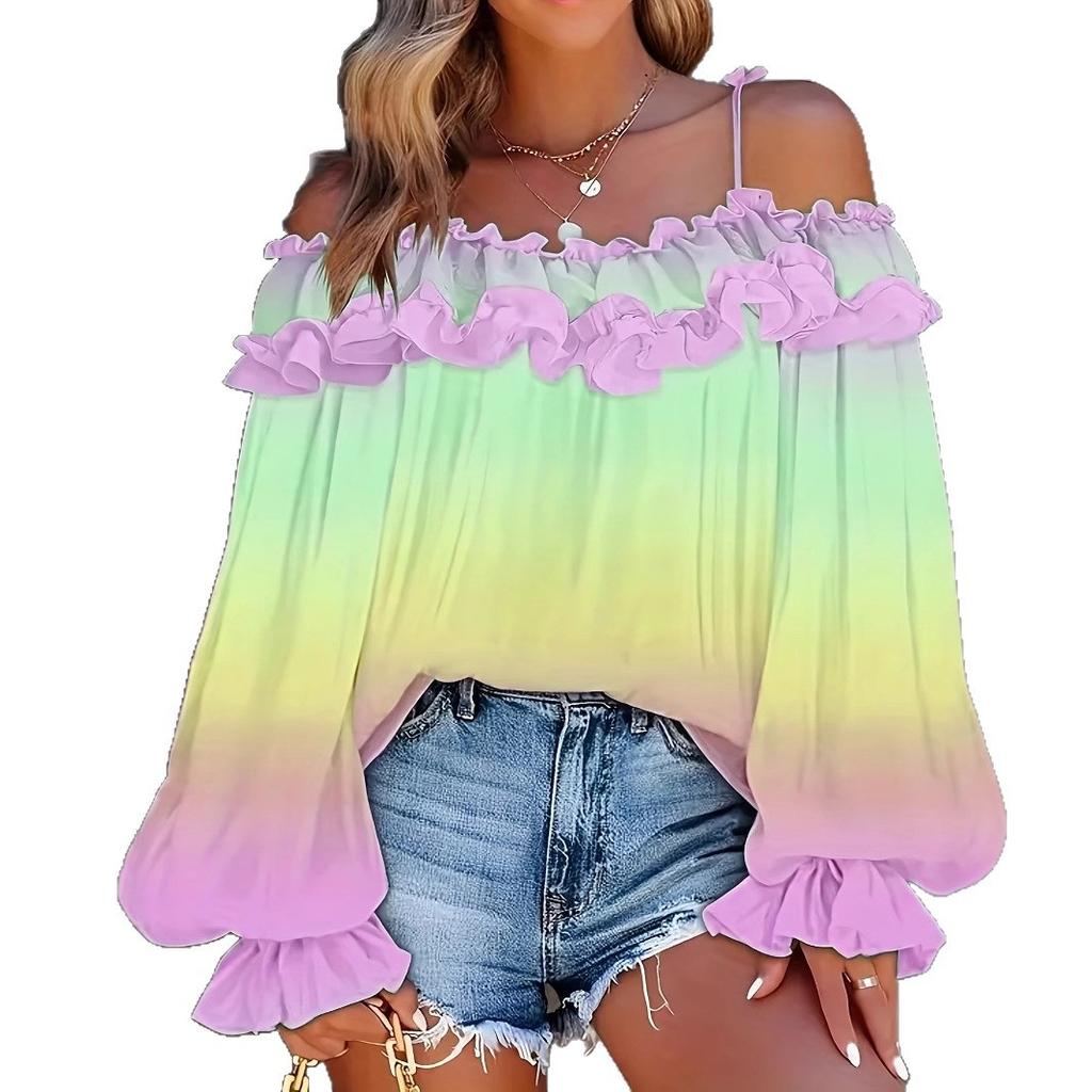 Топ с открытыми плечами, контрастным градиентом, кружевом и кружевом, женские блузки и рубашки большого размера
