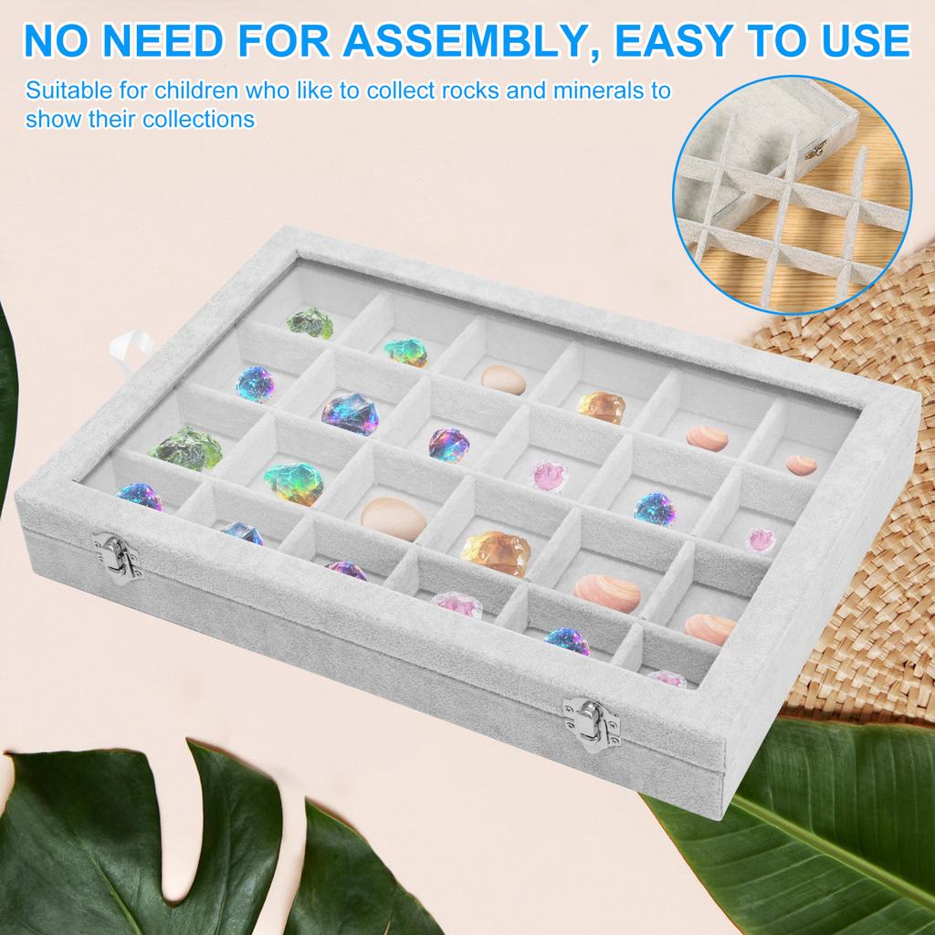 Кейс для демонстрации камней с 24 ячейками с металлическим замком, крышка из прозрачного стекла, многоцелевой кейс для коллекции драгоценных камней, органайзер для демонстрации