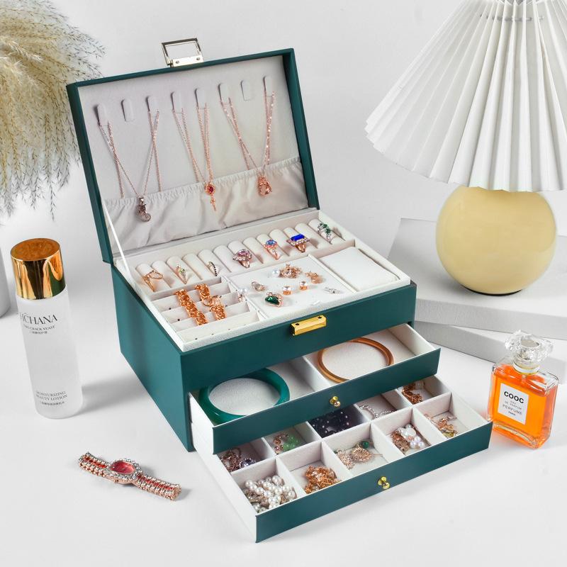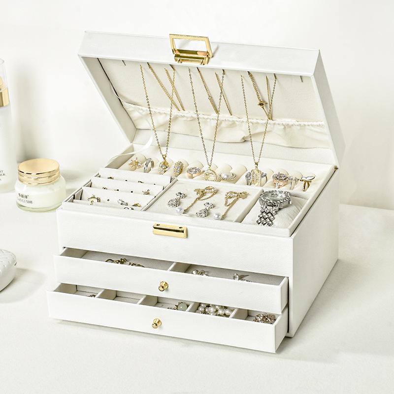 Высококачественная ПУ кожа Трехслойный Тип ящика Пылезащитный Антиокислительный Многофункциональная Коробка для хранения колец, серег, ожерелий