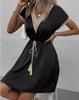 Однотонное платье с короткими рукавами, кружевным V-образным вырезом и приталенным силуэтом — купить товар онлайн с бесплатной доставкой по всему миру!