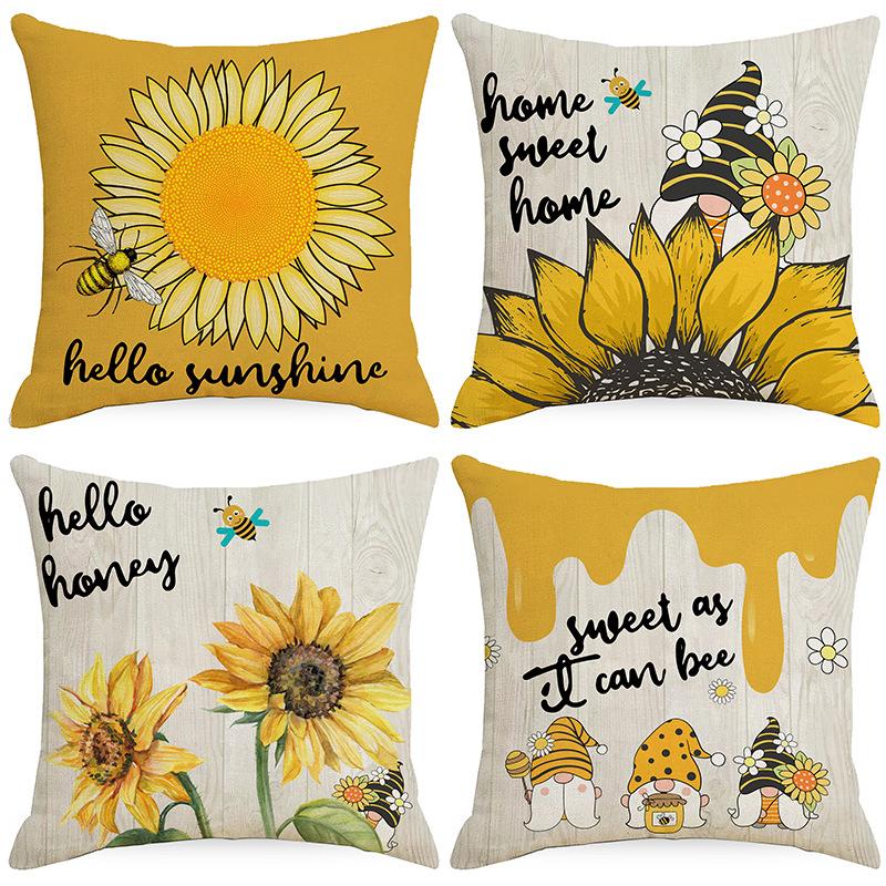 Новая льняная наволочка с принтом подсолнухов и пчел, для автомобиля, дивана, спальни, гостиной