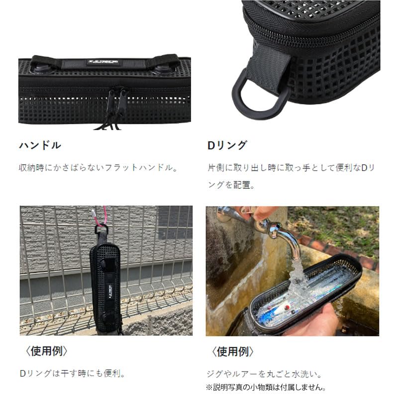 Сумка разработана таким образом, что джиги и блесны можно стирать вместе с сумкой, что облегчает удаление соли после рыбалки и техническое обслуживание.. Он превосходно предотвращает остаточную соль, уменьшает ржавчину и износ.