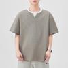 Летняя новая футболка с коротким рукавом, мужская свободная футболка с V-образным вырезом, футболка-обманка из двух частей, свободный японский ретро-стиль