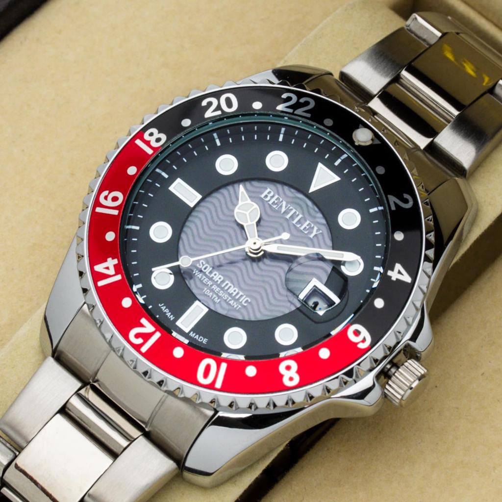 [Klefer] Аналоговые мужские солнечные водонепроницаемые часы с металлическим браслетом Bentley Red BT-AM388-RDS Серебристые