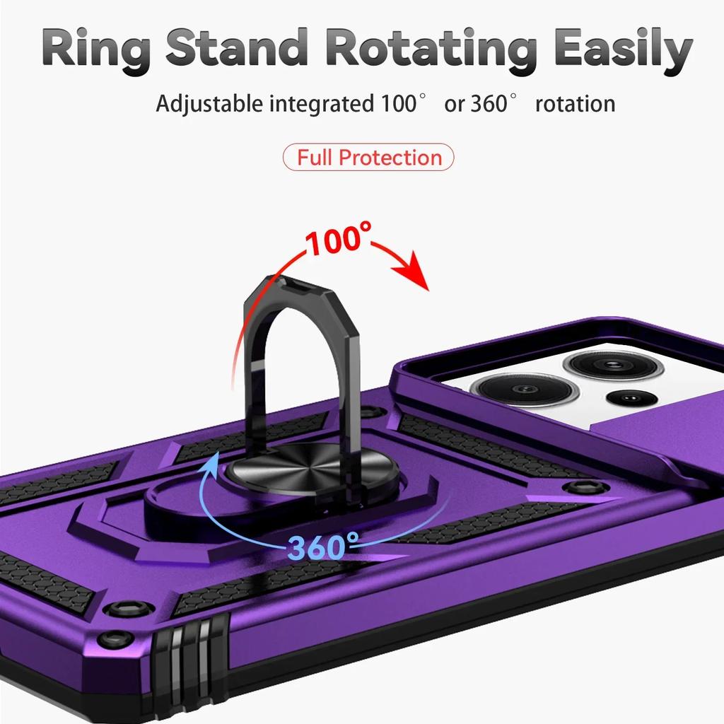Противоударный магнитный чехол для Redmi Note 13 12 Pro 5G 4G 13C 12C 11A POCO M6 Pro C65 со сдвижной шторкой для камеры, кольцом-подставкой и защитной крышкой