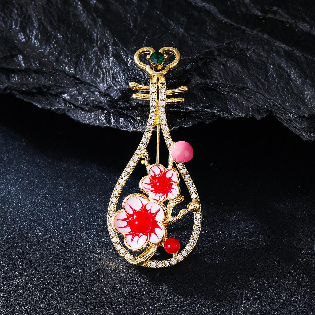 Ретро Эмалевая Брошь Пипа с Цветком Сливы Женская Изысканная Заколка Guochao для Кардигана Защитная от Света Высококлассные Аксессуары для Ципао Корсаж