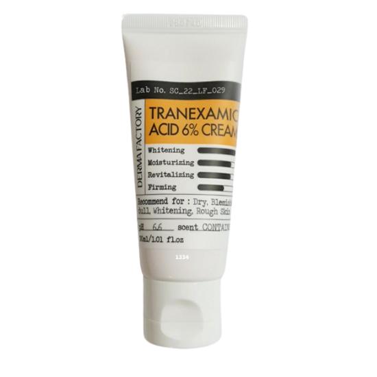 Крем для выравнивания тона Dermafactory с 6% транексамовой кислотой — это сертифицированное веганское средство для ухода за кожей, разработанное для заметного осветления тусклой, неровной кожи.. Содержит 6% транексамовой кислоты, воздействует на пигментные пятна и изменение цвета, помогая восстановить сияющий ровный цвет лица.. Легкий крем быстро впитывается, не оставляя липкости, и подходит для ежедневного использования для всех типов кожи.