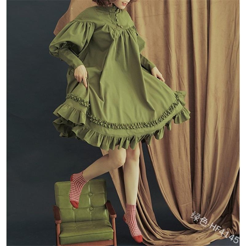 Женское свободное кружевное платье с длинными рукавами-фонариками на пуговицах, косплей, однотонное, милое, длиной до колена