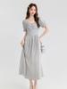 2025 Summer Women clothes Korean Style Fresh Color Matching Plaid Sweet Square Collar Puff sleeve High Waist Slim fit Younger Dress — купить товар онлайн с бесплатной доставкой до всему миру!