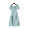 2025 Summer Women clothes Korean Style Fresh Color Matching Plaid Sweet Square Collar Puff sleeve High Waist Slim fit Younger Dress