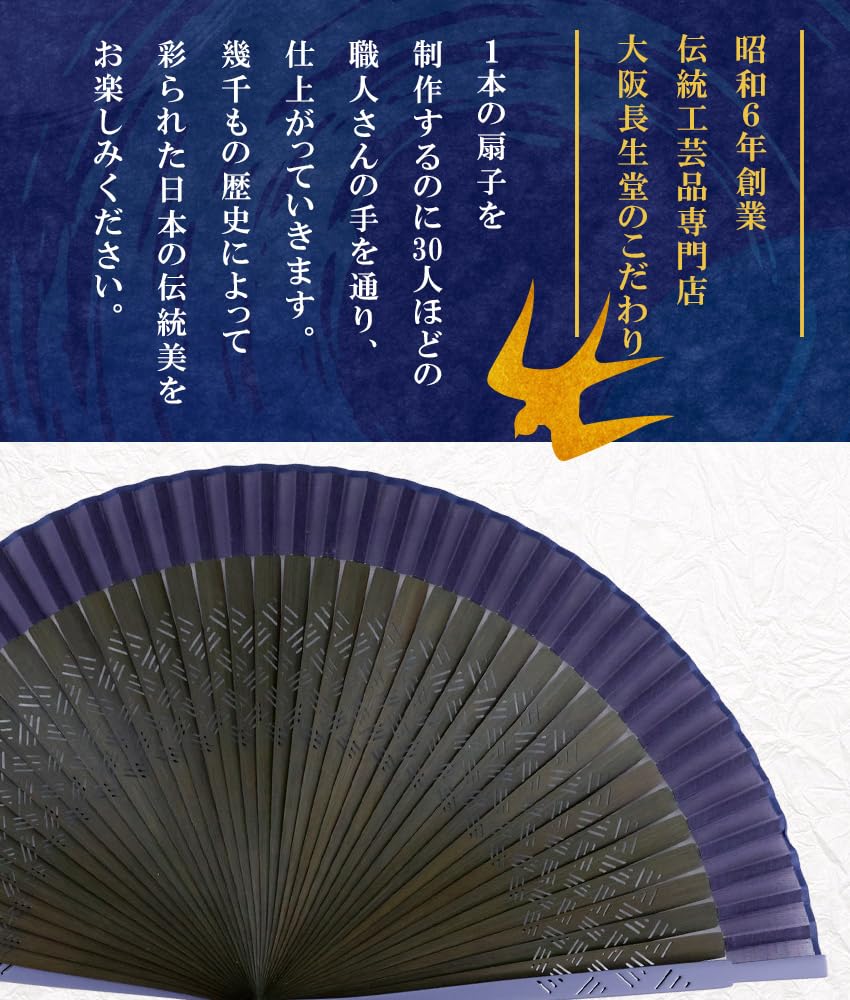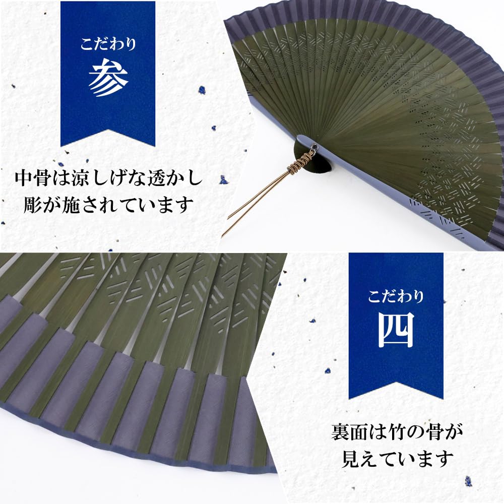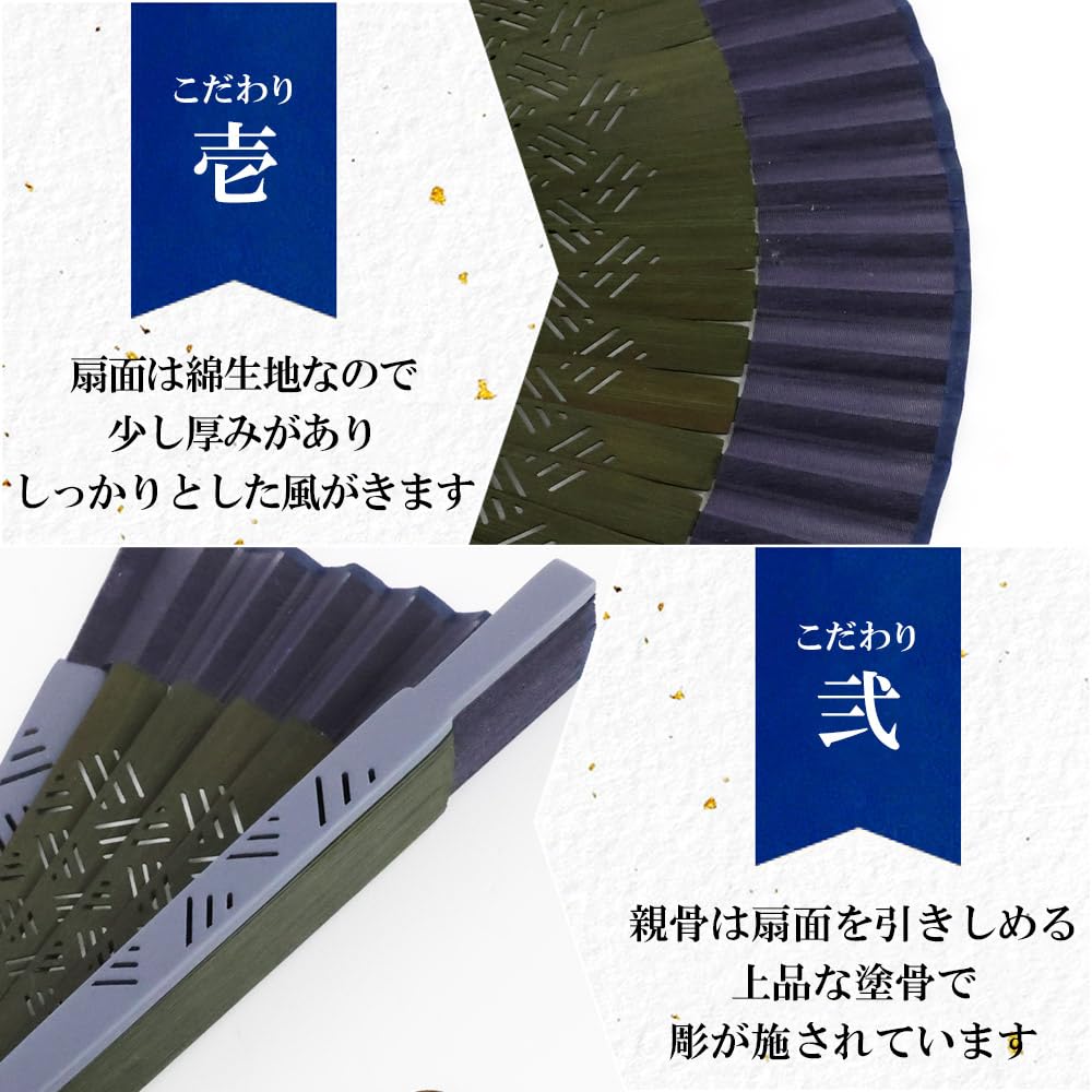 Складной веер для набора вееров с плетением [Osaka Choseido] мужской, стильный, деловой, сумка, держатель, носовой платок, (флот)
