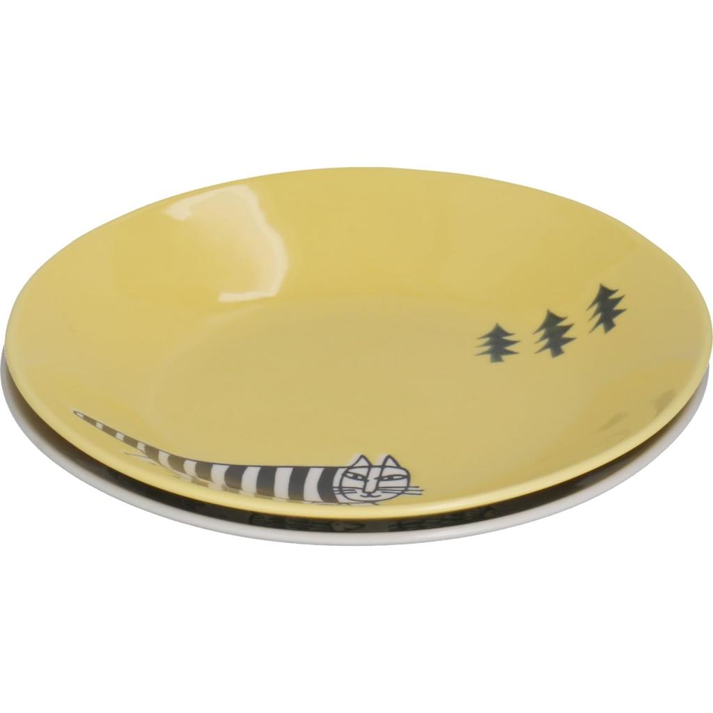 Yamaka Shoten Лиза Ларсон Тарелка для пасты 22 см Набор из 2 штук Прогулка Сделано в Японии Желтый/Серый LL90-68