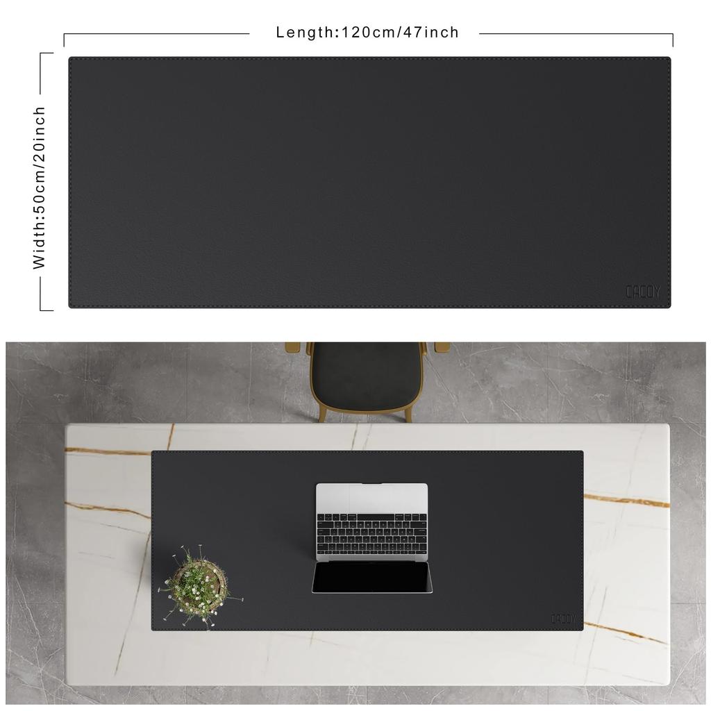 Cacoy 120x50см PU Кожаный Настольный Расширенный Игровой Коврик для Мыши Водонепроницаемый Многофункциональный Настольный Коврик для Офиса Черный Коврик, Коврик, -