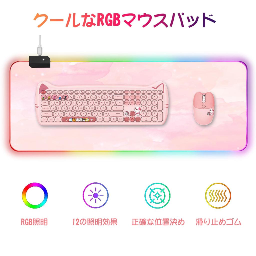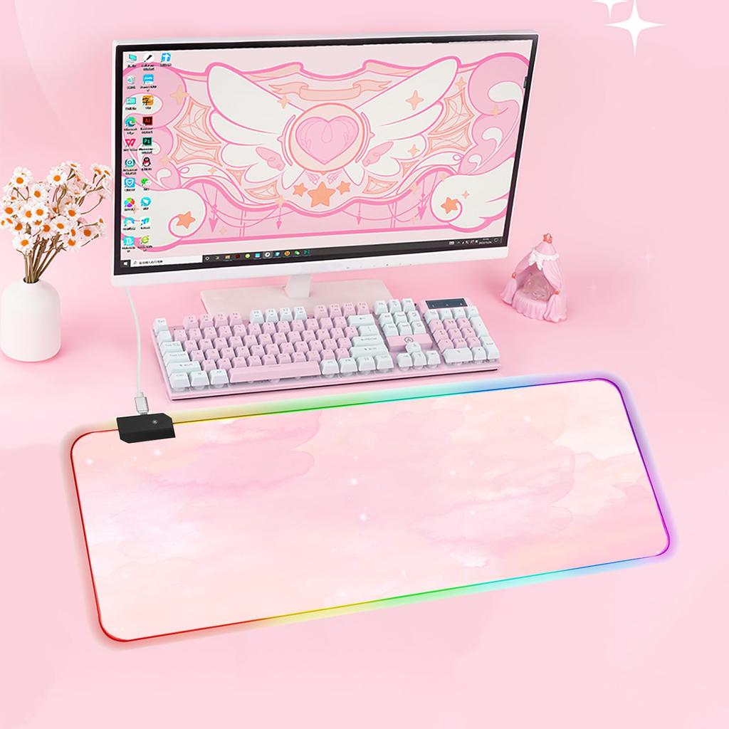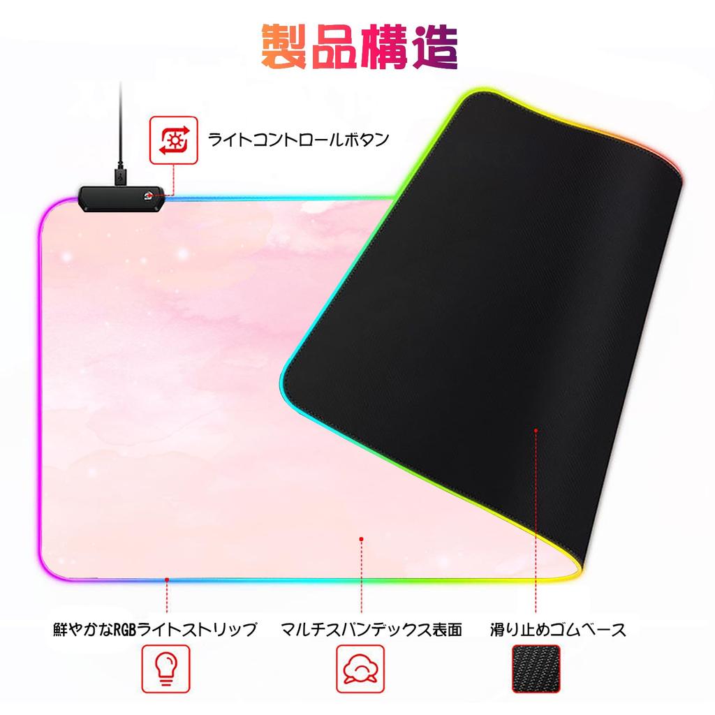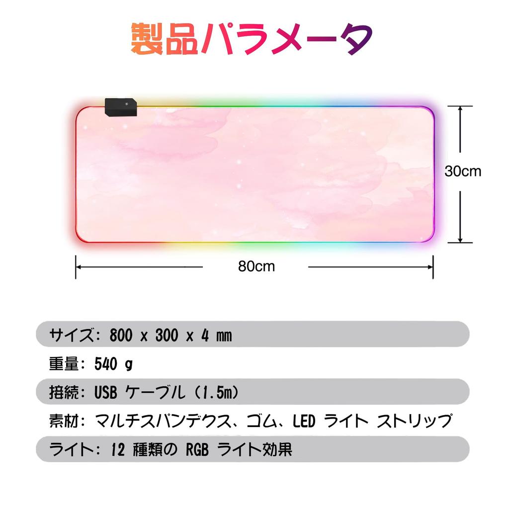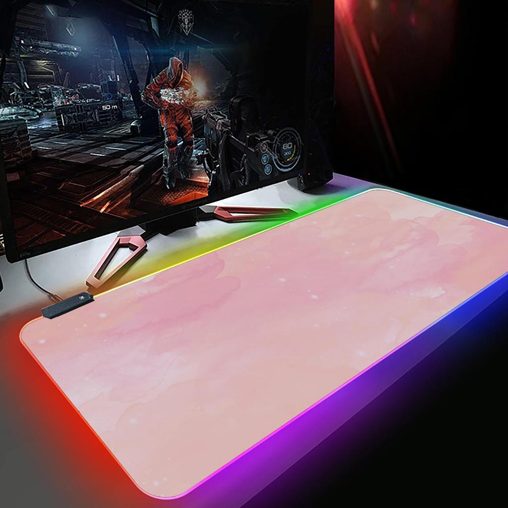 Большой коврик для мыши Игровой коврик для мыши с 12 режимами RGB-подсветки, Водонепроницаемый резиновый эффект, Поверхность Multi-Spandex, Нескользящая основа, 8003004мм (Розовая туманность)
