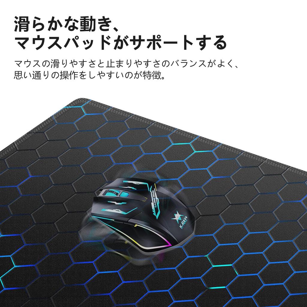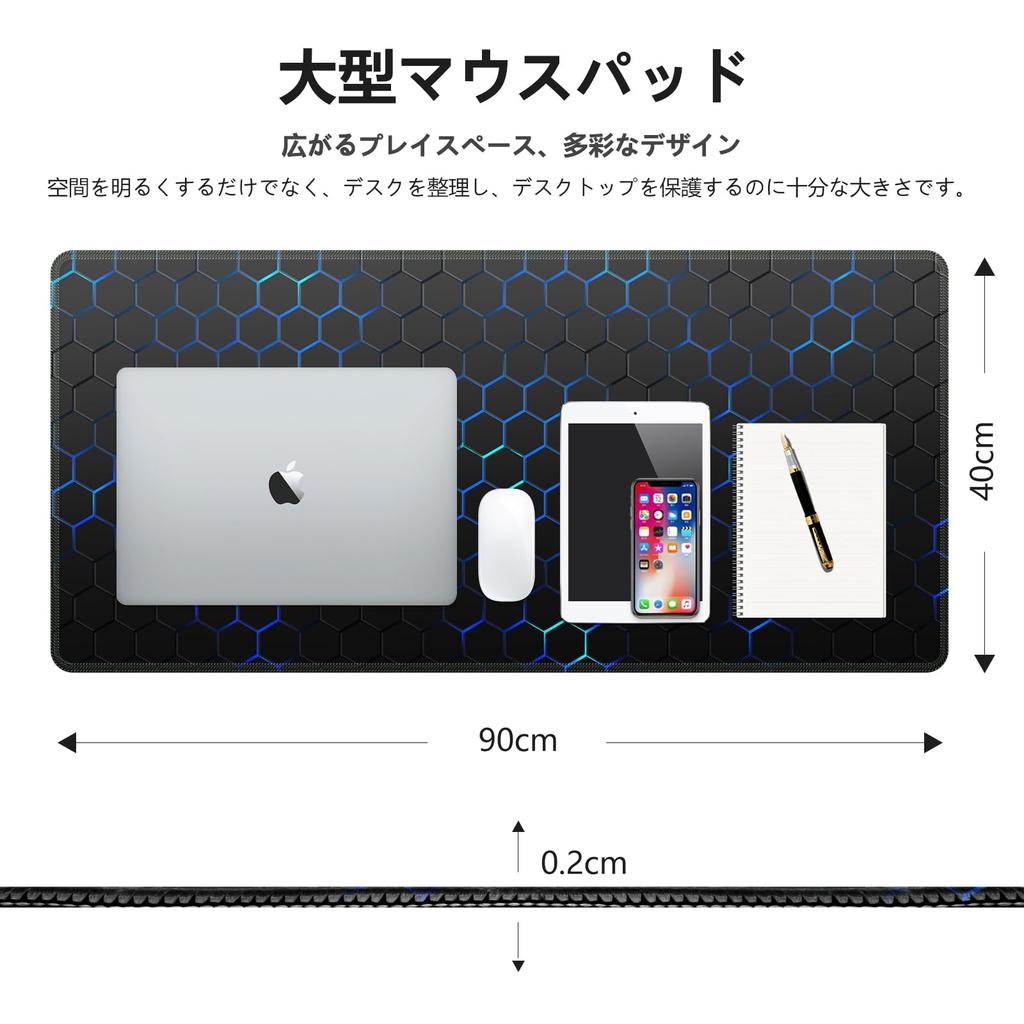 [Достаточно места] Коврик для мыши большой, глубиной 400 мм и шириной 900 мм, поэтому его можно использовать не только как коврик для мыши, но и как настольный коврик. Нет проблем с использованием его как с клавиатурой, так и с мышью.. Благодаря такой большой поверхности коврик не будет скользить, поэтому вы можете играть динамично и уверенно.. Широкий диапазон движений значительно снижает нагрузку на ваши запястья.