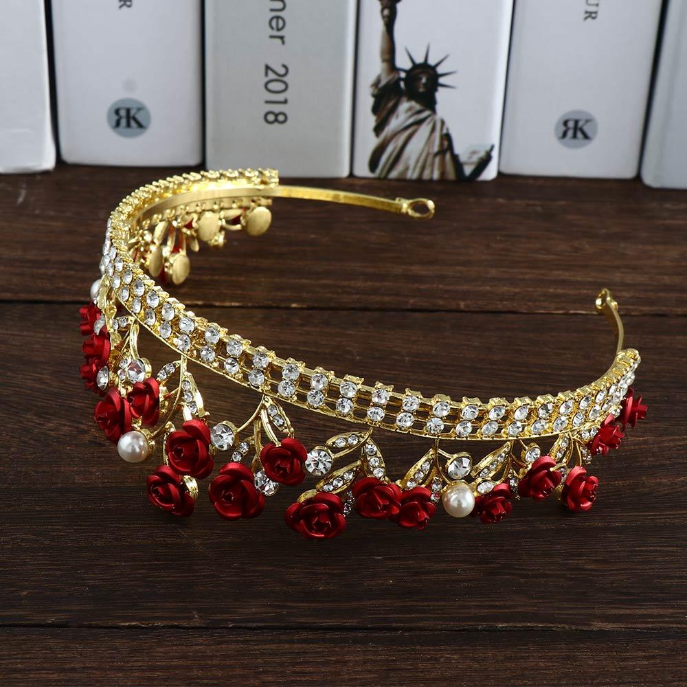 Принцесса Винтаж Красная Роза Страз Золотой Цвет Цинковый Сплав Свадебная Тиара Диадема Головной Убор Корона для Волос