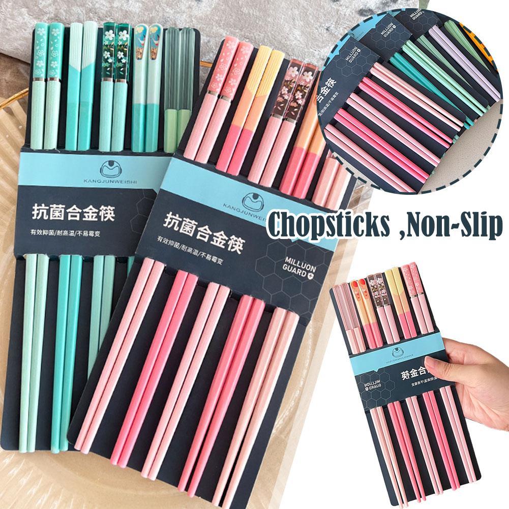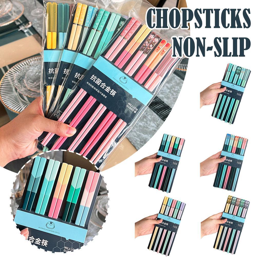Набор из 5 пар нескользящих палочек для еды цветов Моранди, многоразовые домашние палочки для еды, палочки для еды для ресторана S K8W4