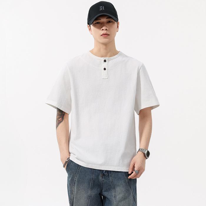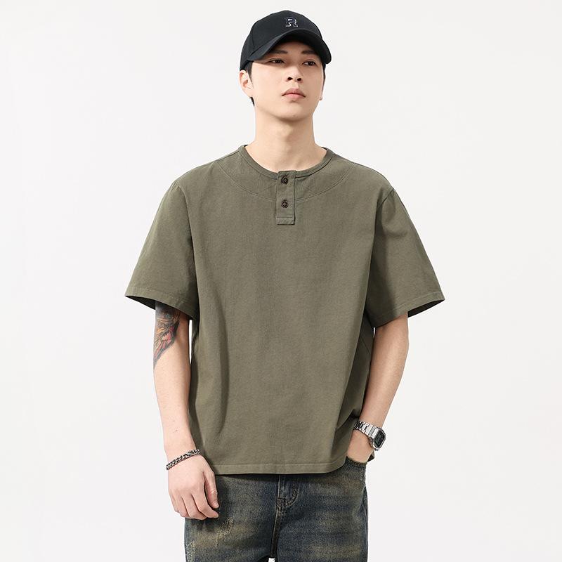 Ретро футболка с коротким рукавом Мужская Летняя из чистого хлопка Топ Однотонная Свободная с круглым вырезом и рукавом до локтя