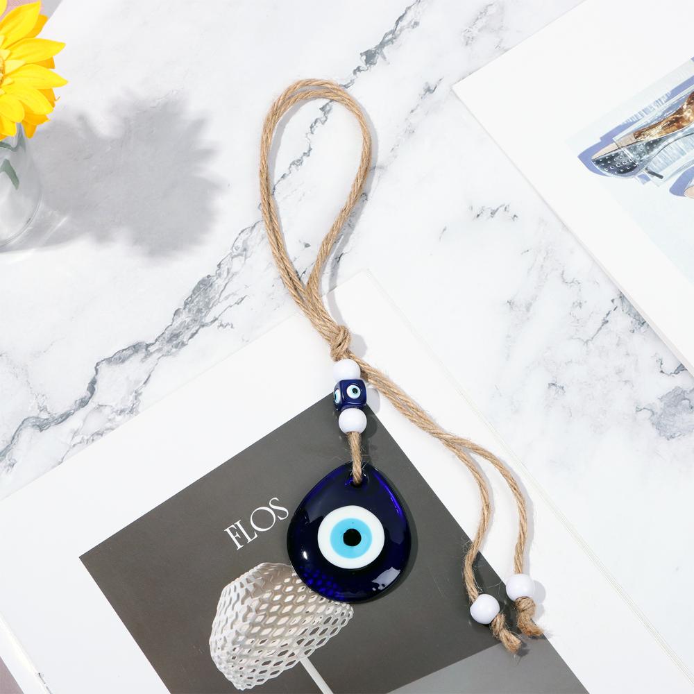 Талисман удачи Стеклянное украшение для автомобиля Благословляющий орнамент Темно-синий Пеньковая веревка Подвесной орнамент Сглаз