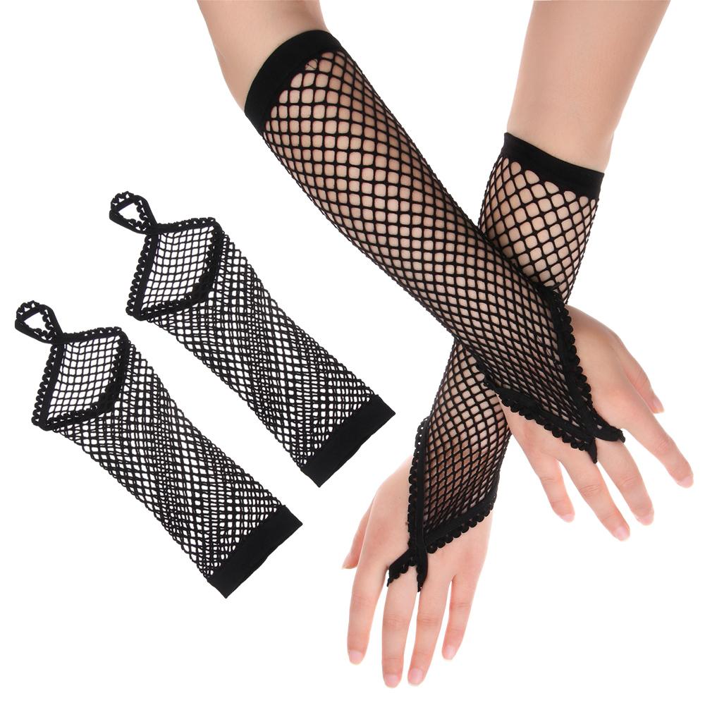 Модные однотонные перчатки-сетки для танцев, длинные перчатки, кружевные митенки, перчатки без пальцев