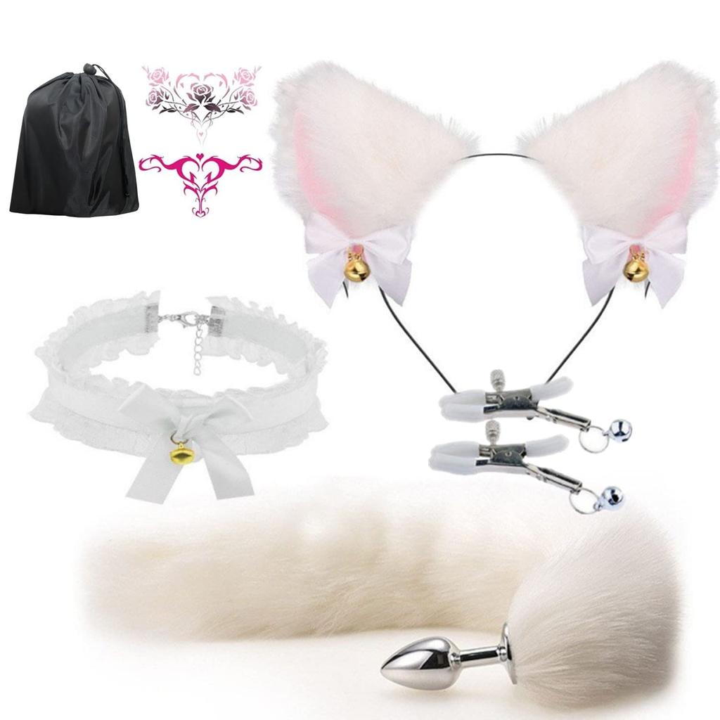 Анальный кошачий ошейник с соском анальный анальный сосок костюм для косплея эротический взрослый похотливый гребень татуировка сумка для хранения в комплекте пробка, хвост, уши, повязка на голову, колокольчик,