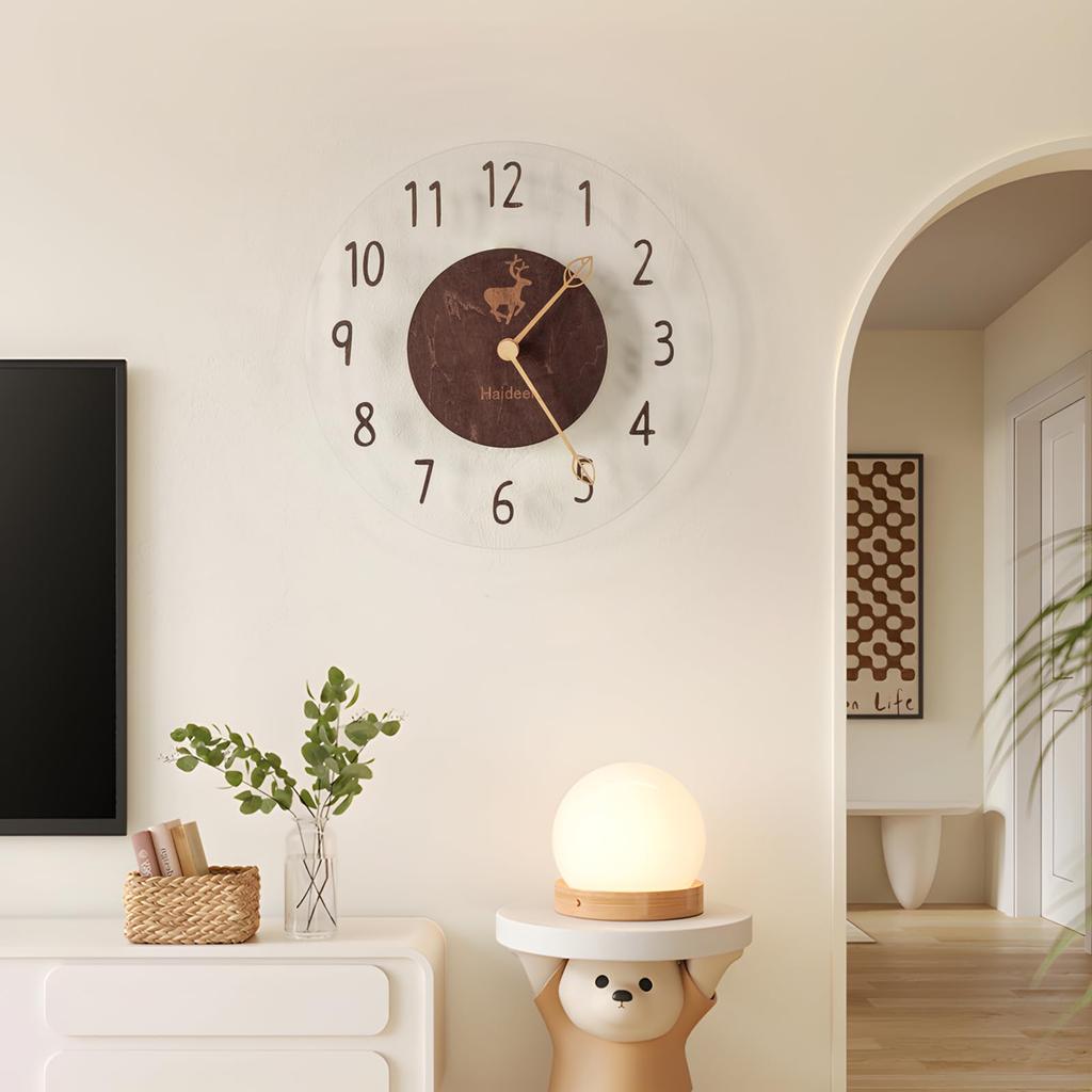 Стильные настенные прозрачные батарейные закаленное стекло деревянные простые цвет дерева F часы, часы, бесшумные, деревянные, натуральные, орех, работающие, циферблат, стрелки,