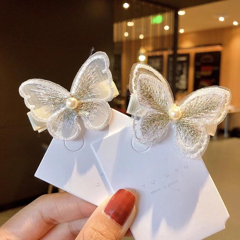 Вышитая 3D-заколка для волос «Бабочка» Супер бессмертная заколка для волос в старинном стиле с жемчугом и сеткой, заколка для челки, декоративный аксессуар для волос для девочек