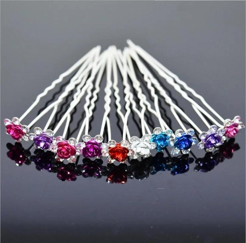 Серебряная брошь в виде цветка розы, бриллиантовые аксессуары для волос, одинарное женское украшение для волос, красивая модная декорация