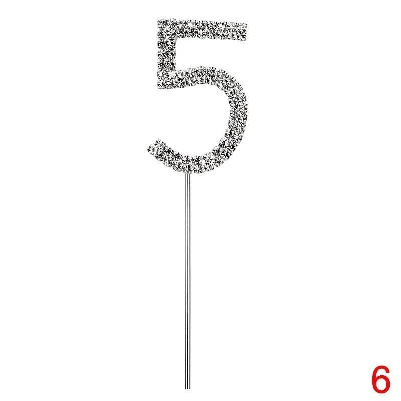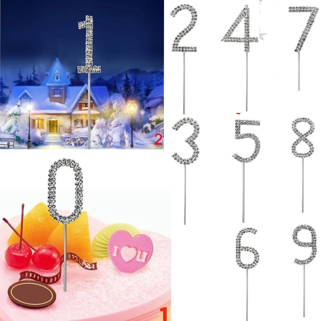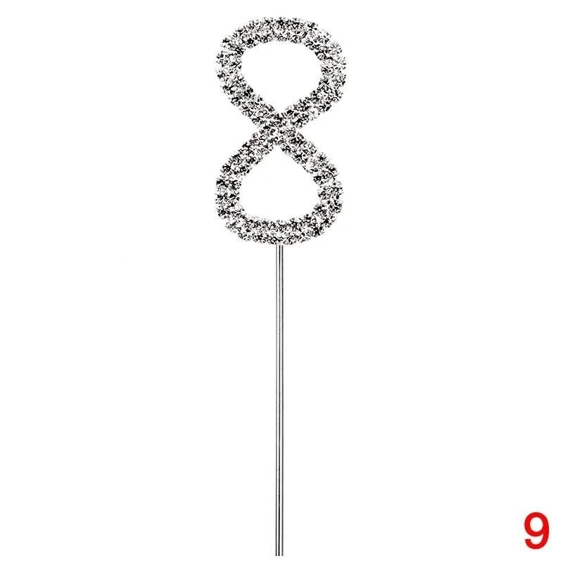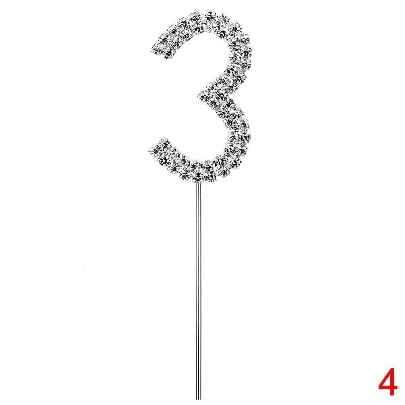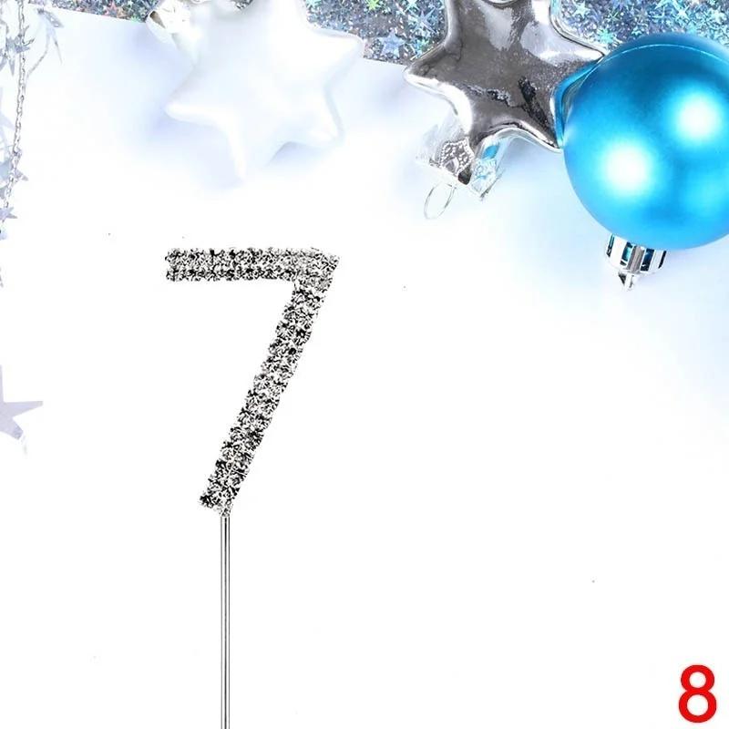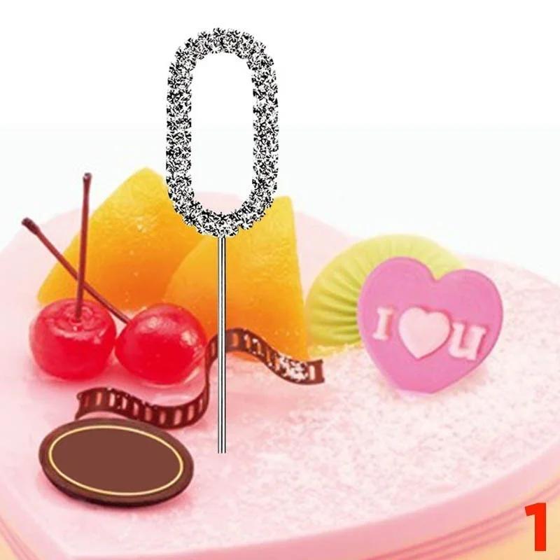 Серебряная фигурка-цифра Cake Pick, прозрачные стразы, бриллианты, драгоценный камень 0 1 2 3 4 5 6 7 8 9