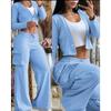 Женская мода весна осень однотонный принт длинный рукав V-образный вырез брюки костюмы повседневный костюм