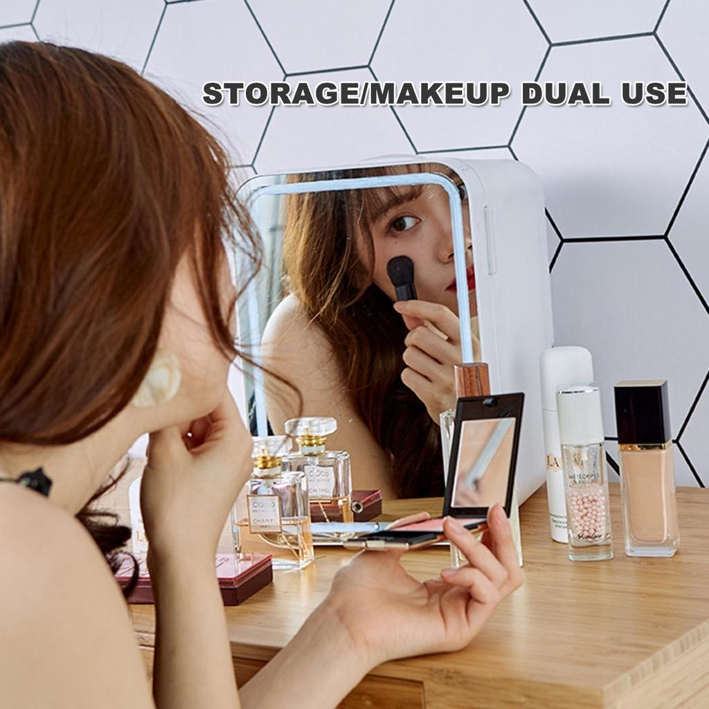 дверь со встроенным зеркальным стеклом имеет гало по краю. Вы можете просто достать косметику из холодильника и нанести ее перед холодильником.. Поэтому ваша повседневная жизнь становится более удобной.