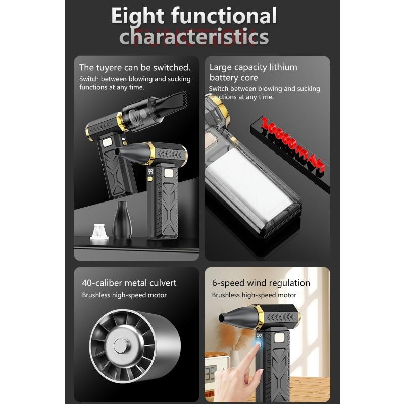 400000 об/мин Мощный электрический воздуходув Портативный пылесос Зарядка Type-C 53 м/с Бесщеточный 10000 мАч Турбо-реактивный вентилятор