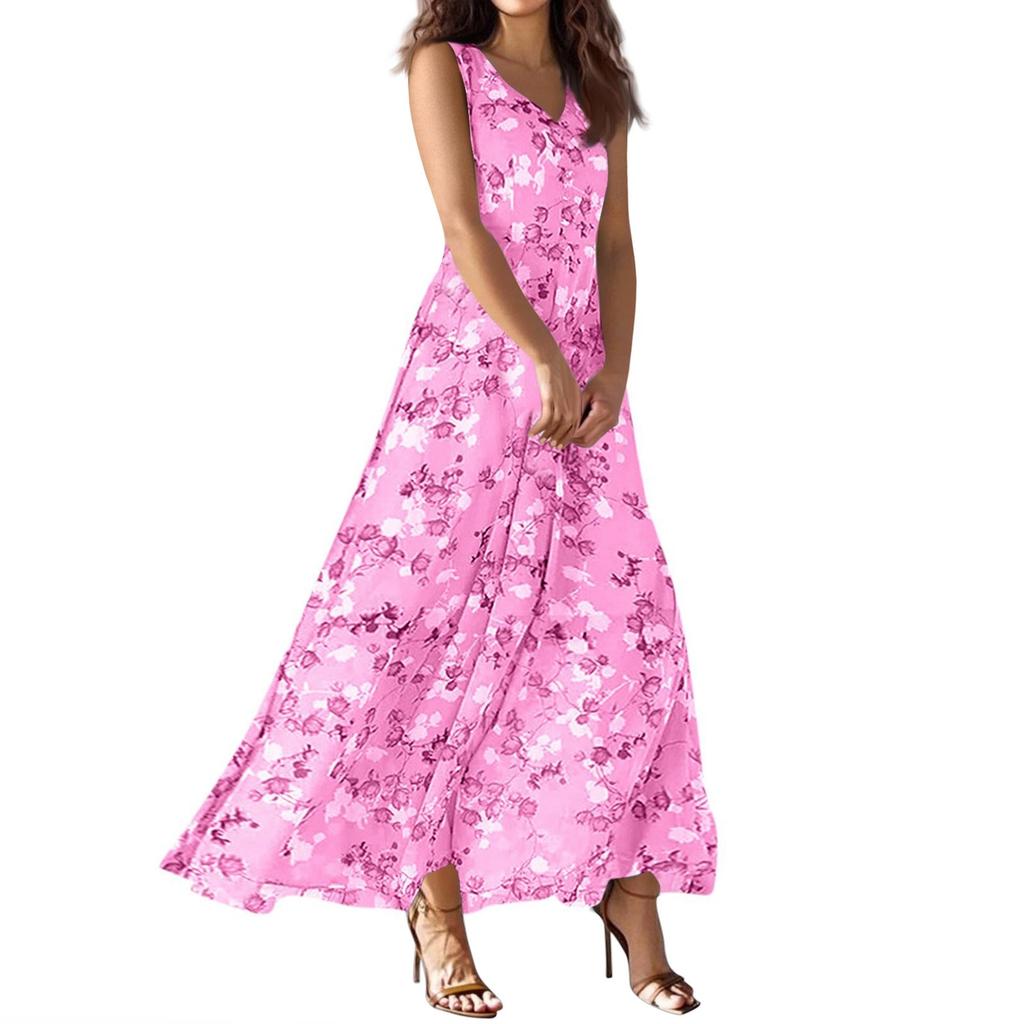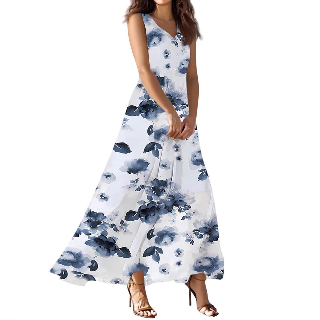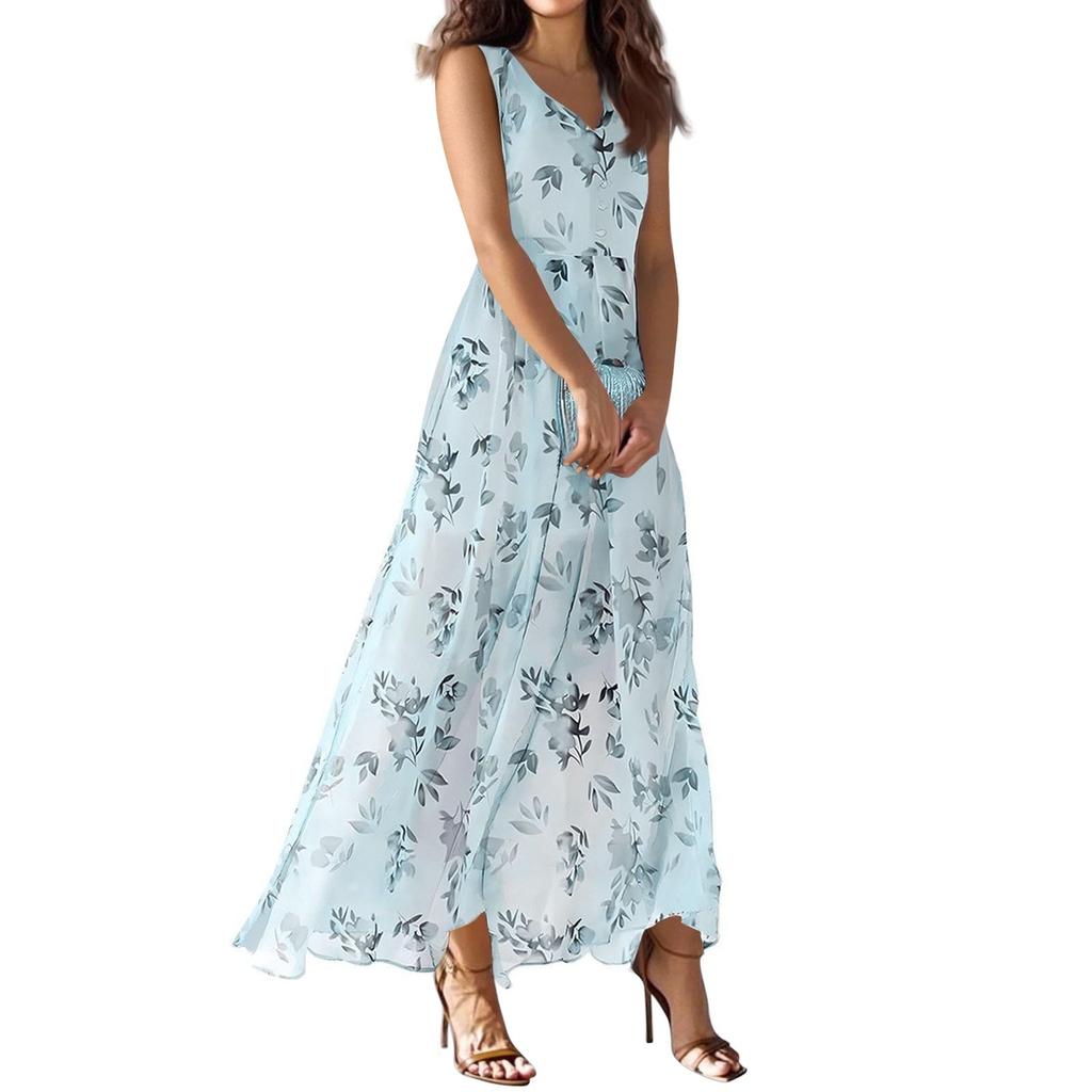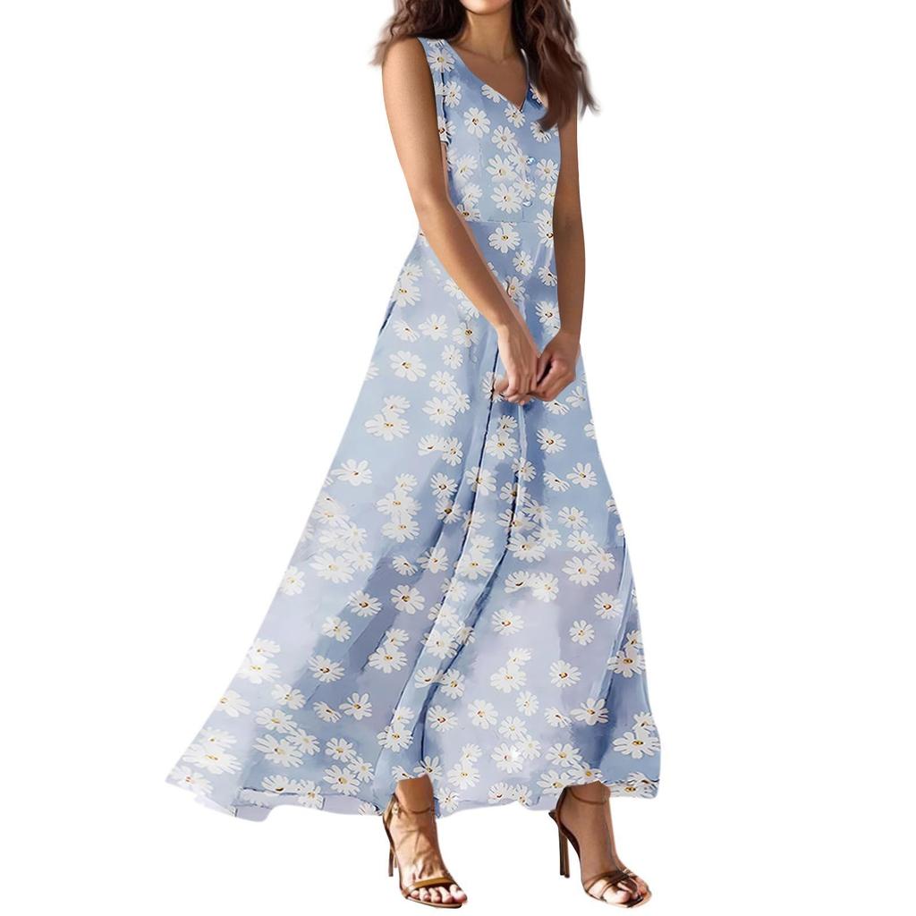 Женское летнее повседневное модное платье с V-образным вырезом без рукавов