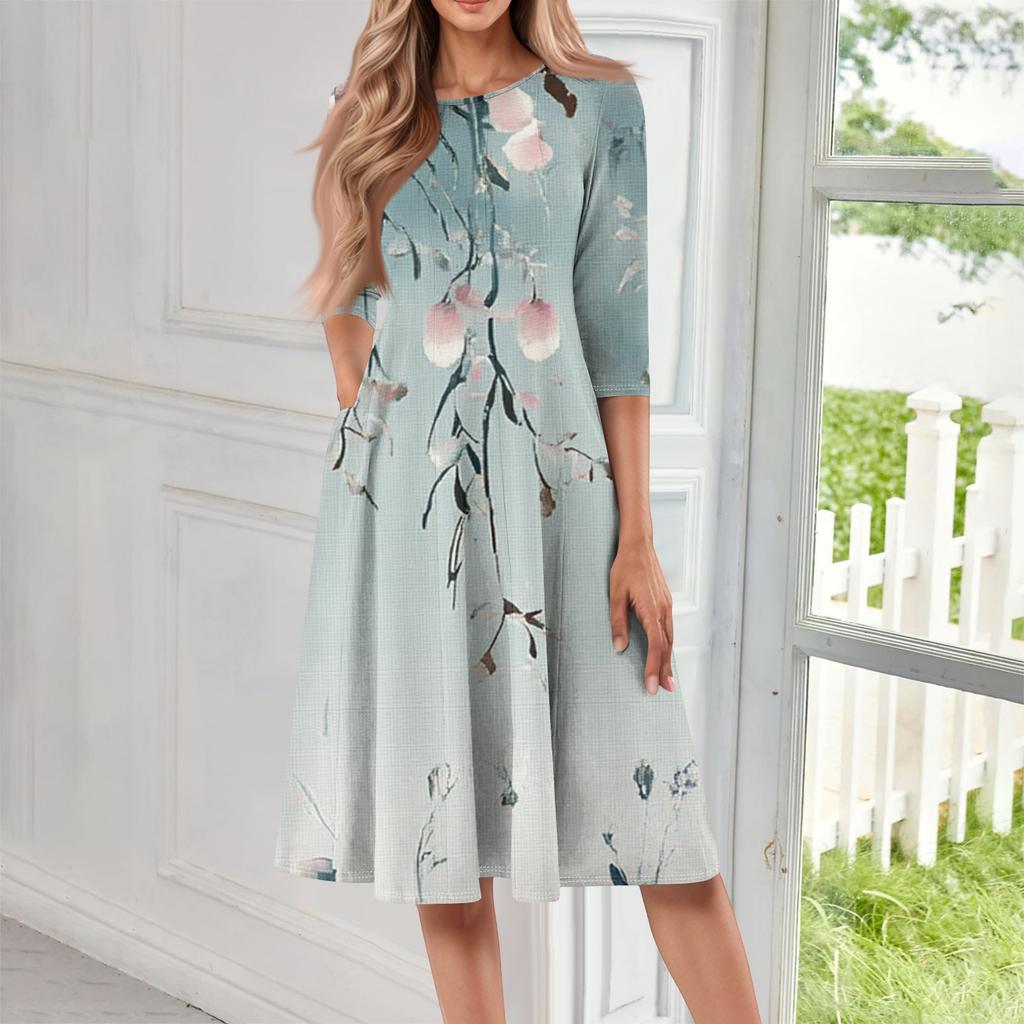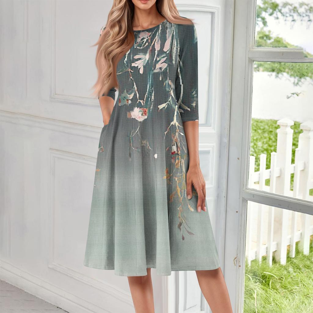Женское повседневное модное платье миди с круглым вырезом и рукавом три четверти