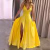 Женское однотонное платье на бретелях с V-образным вырезом, открытой спиной и разрезом — купить товар онлайн с бесплатной доставкой до всему миру!