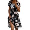 Платье в стиле бохо с коротким рукавом для женщин, повседневное, свободного кроя, сарафан с принтом, круглым вырезом, с карманами