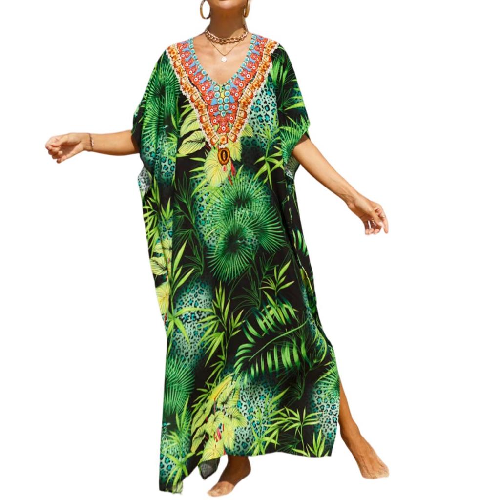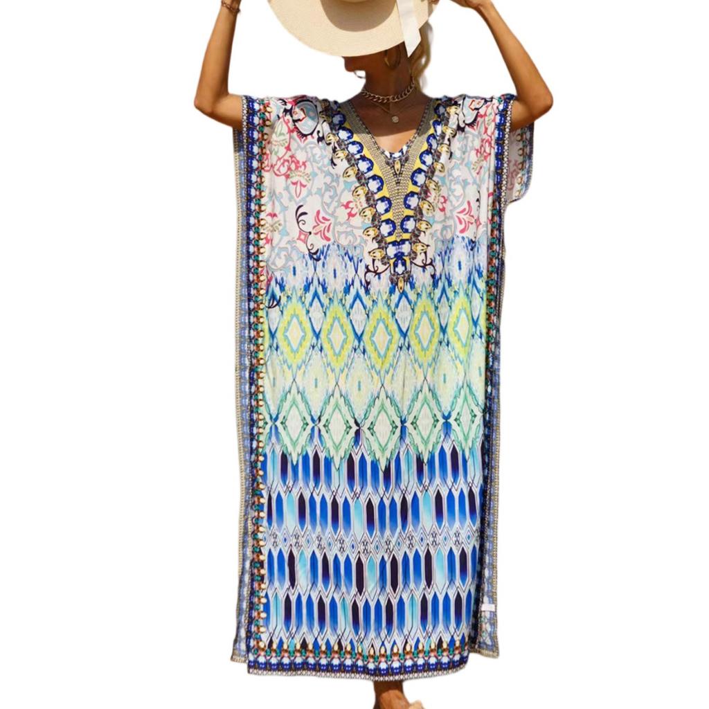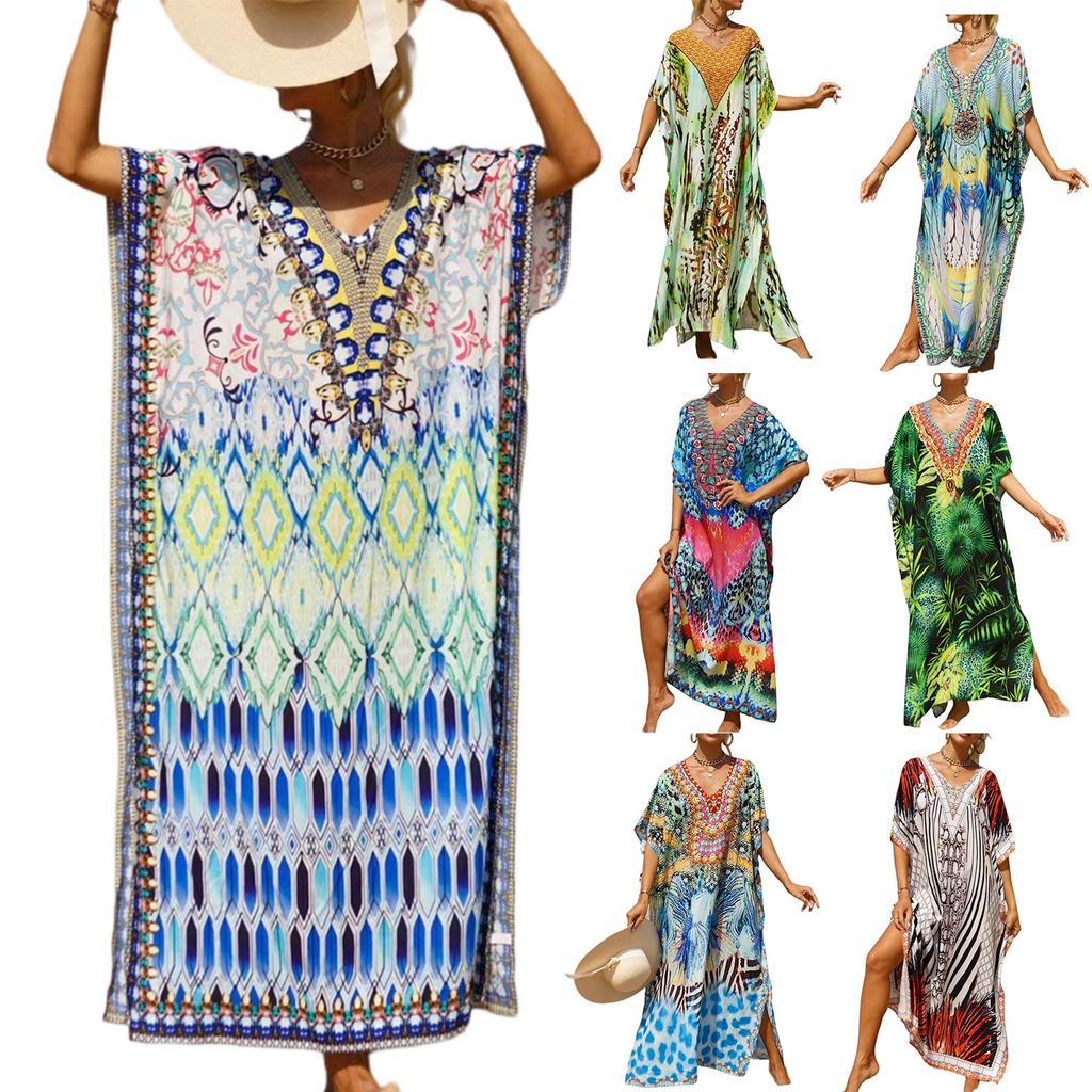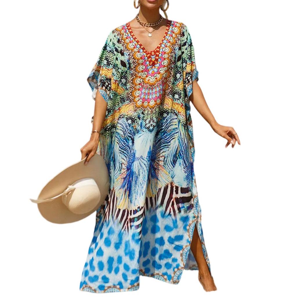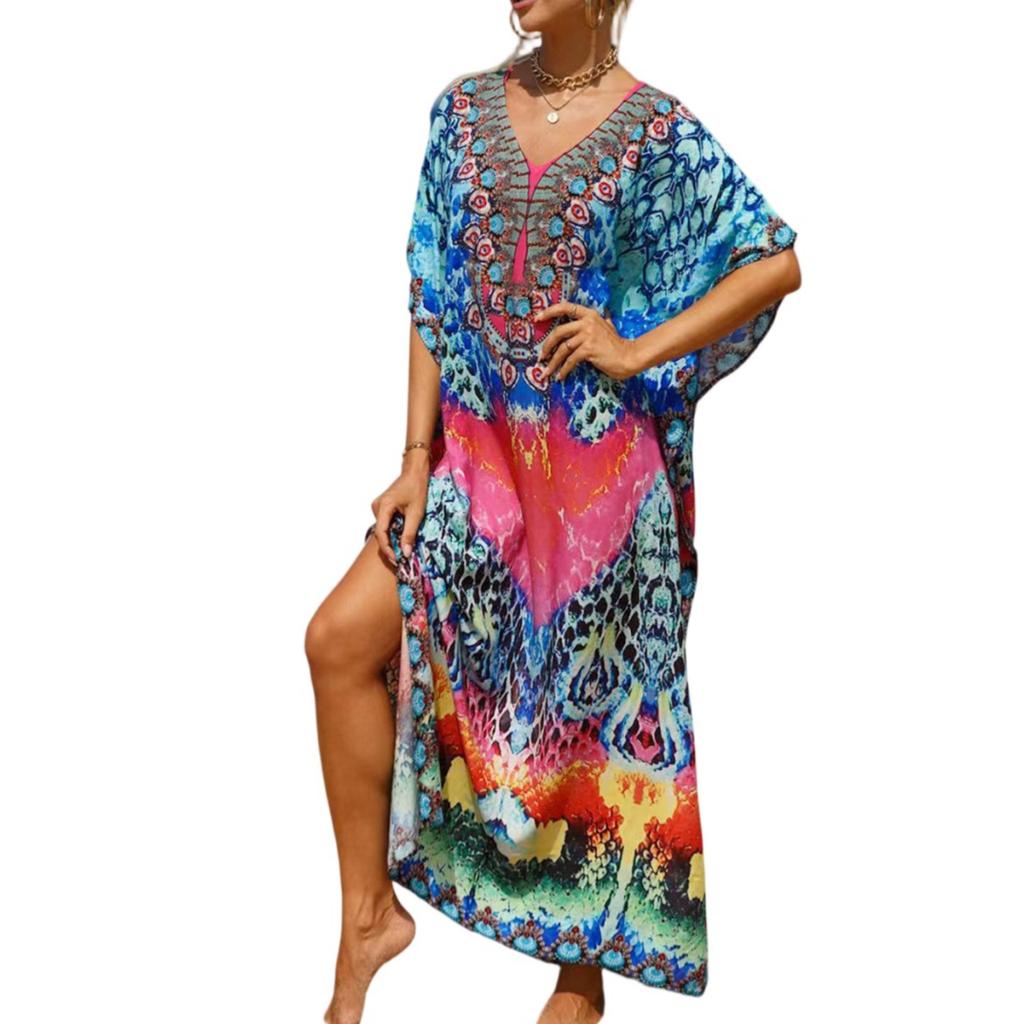 Женское платье, красочные цветочные принты, свободный халат для отпуска, бикини, защитный халат от солнца
