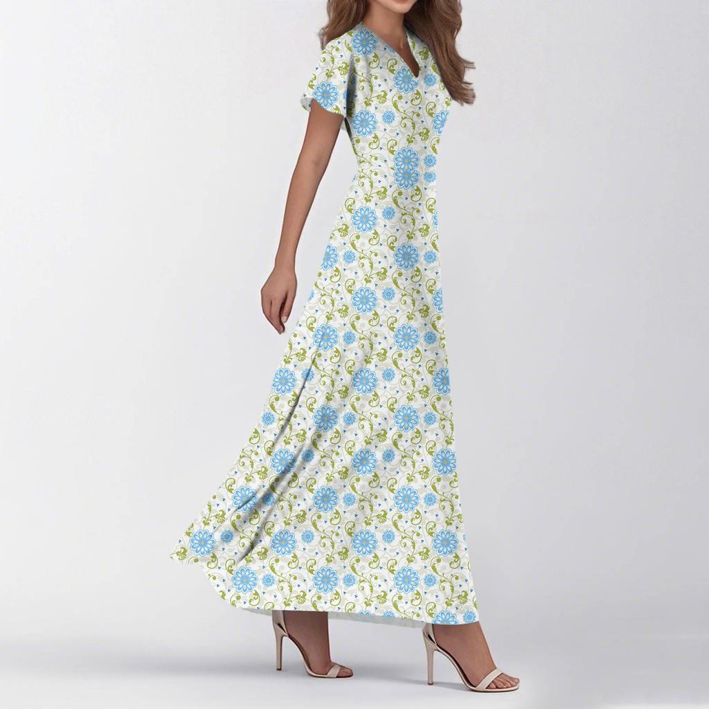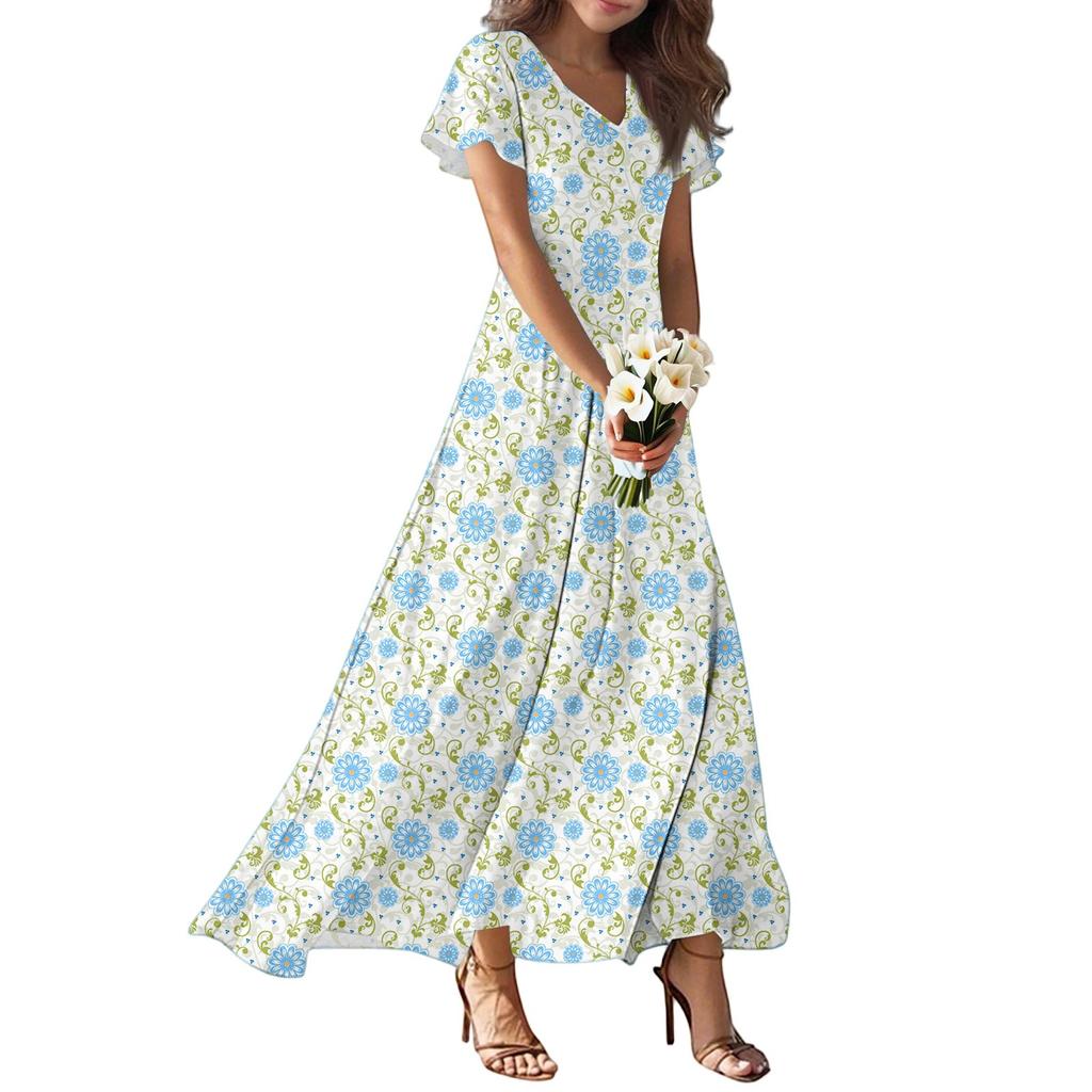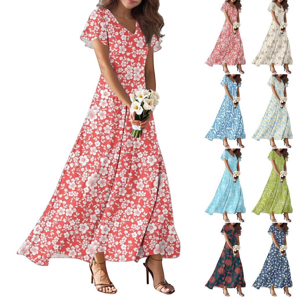Женские летние повседневные модные платья с принтом, платья с V-образным вырезом и коротким рукавом