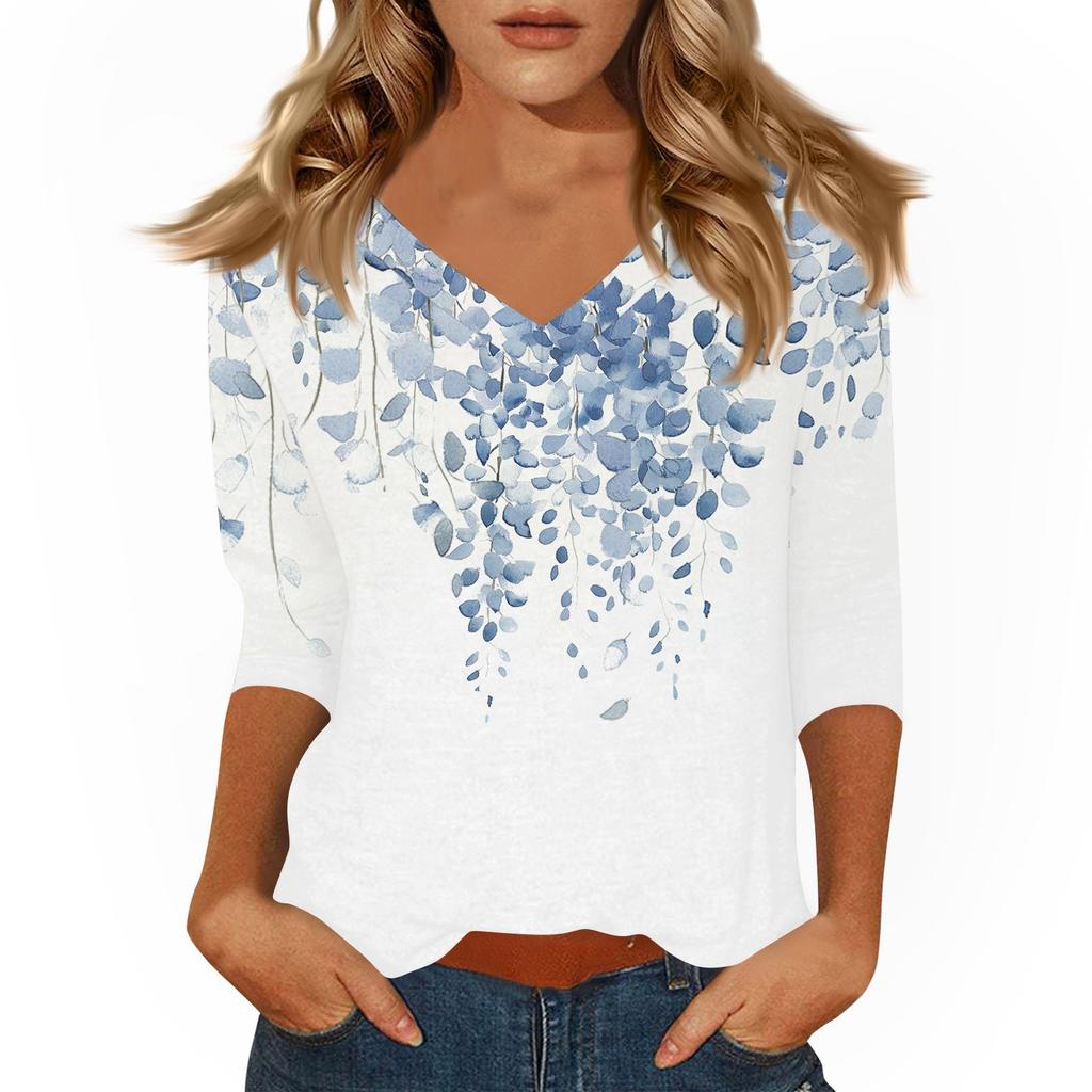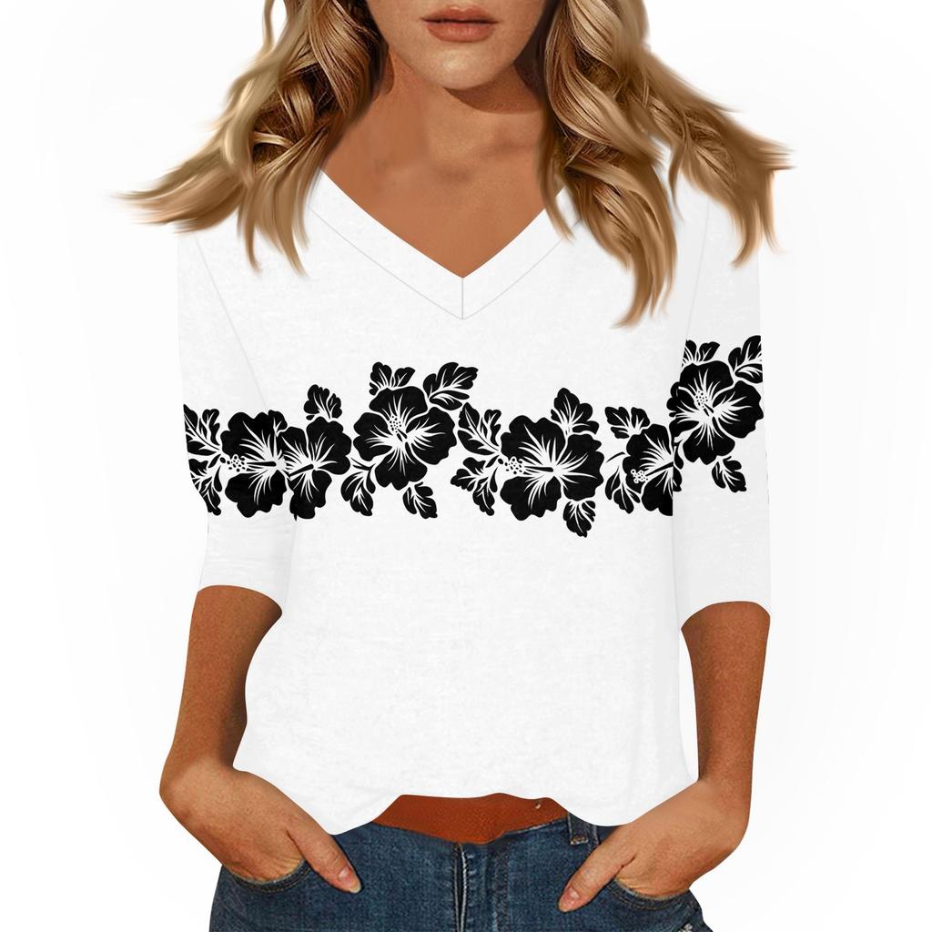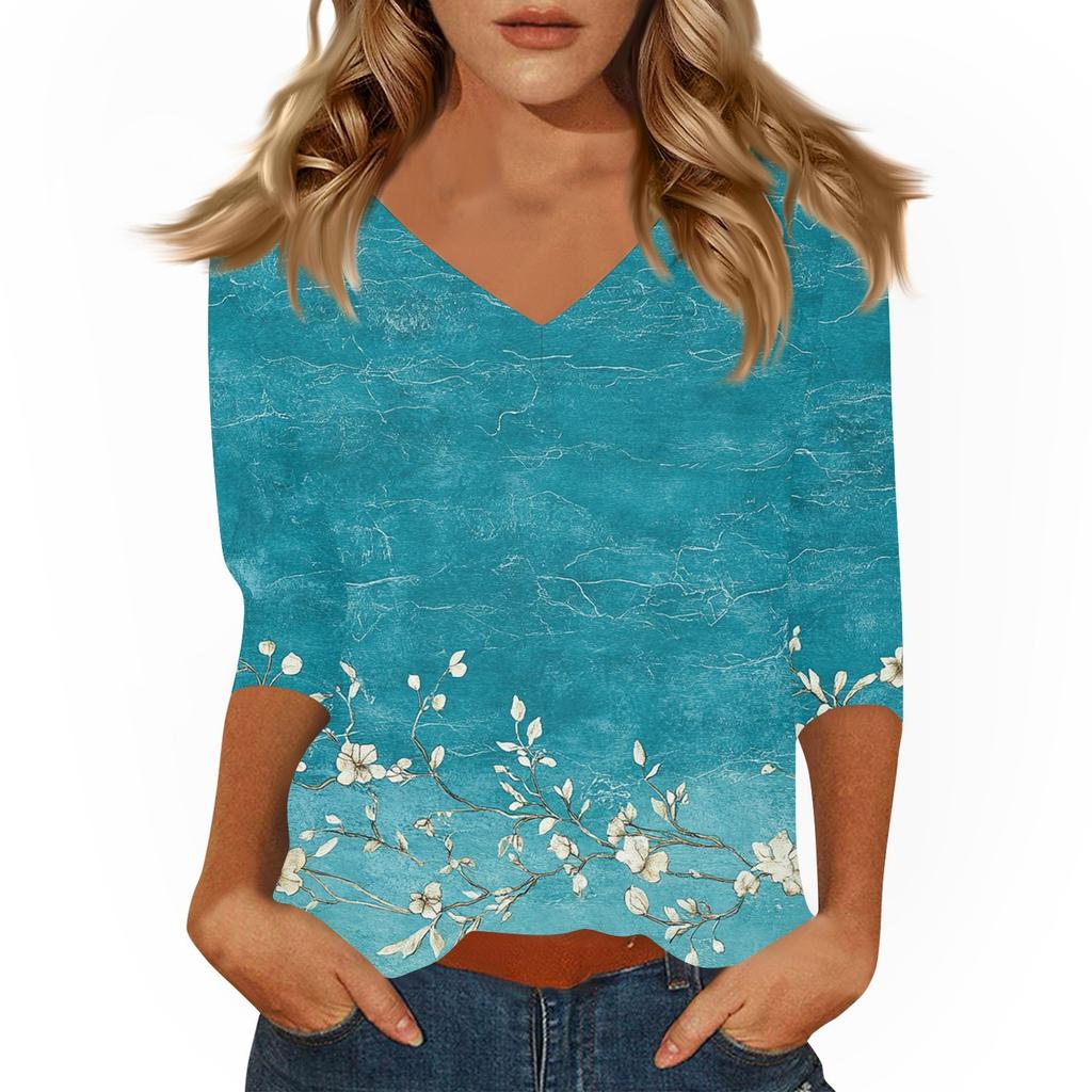 Женские повседневные футболки с рукавом 3/4, топы с V-образным вырезом