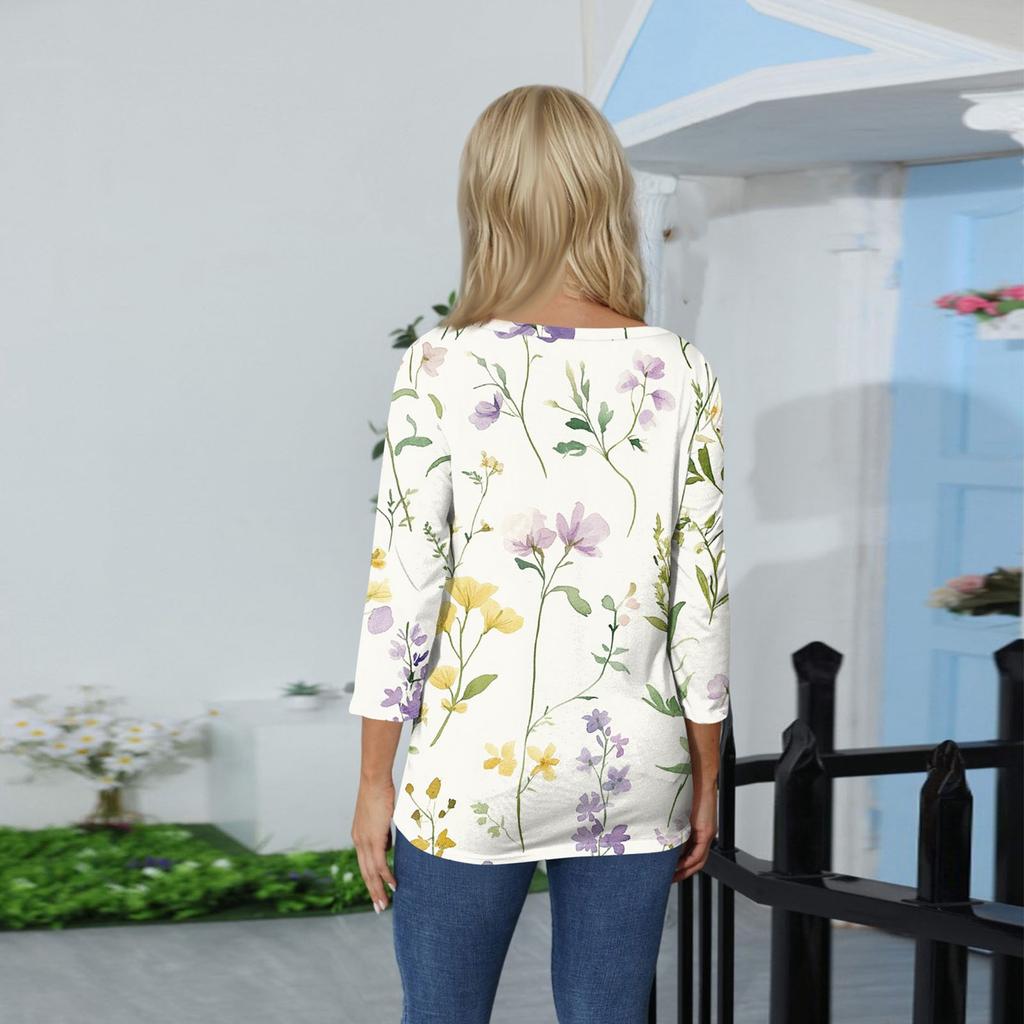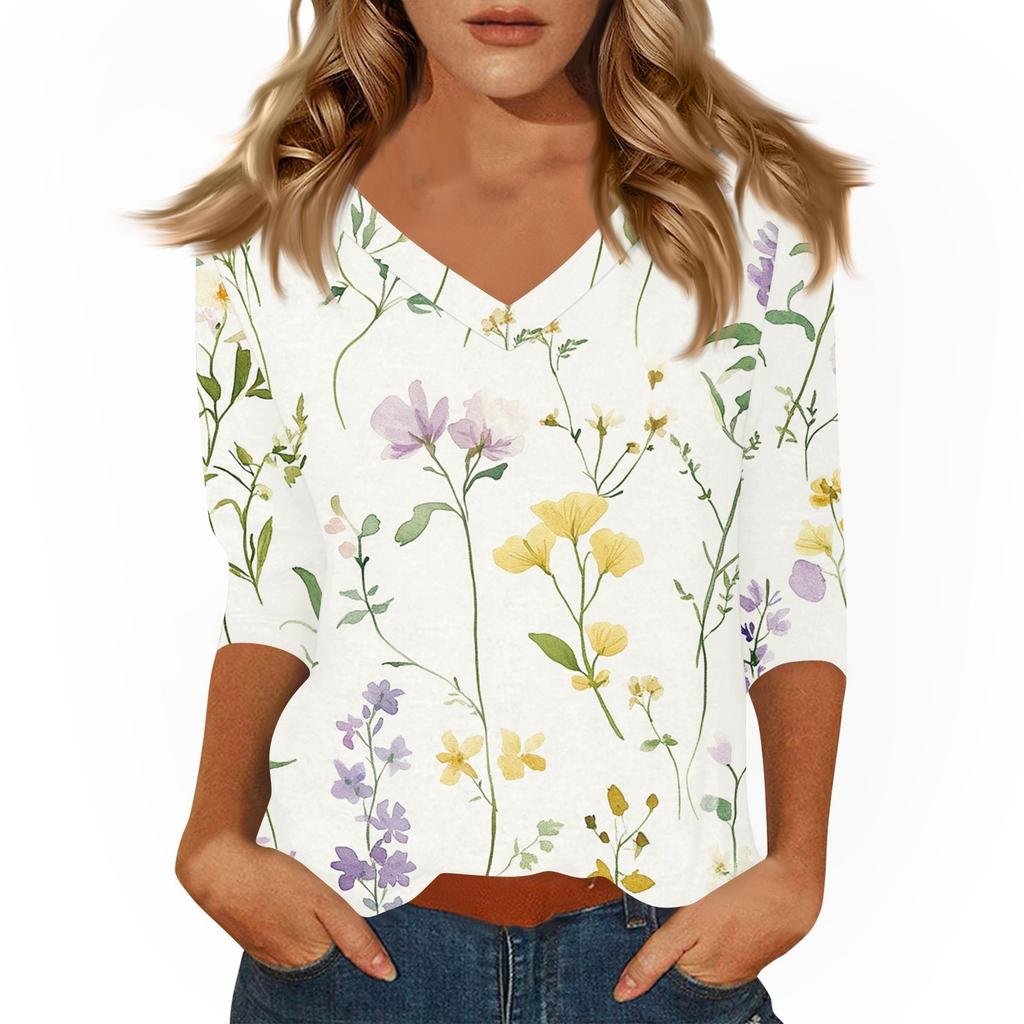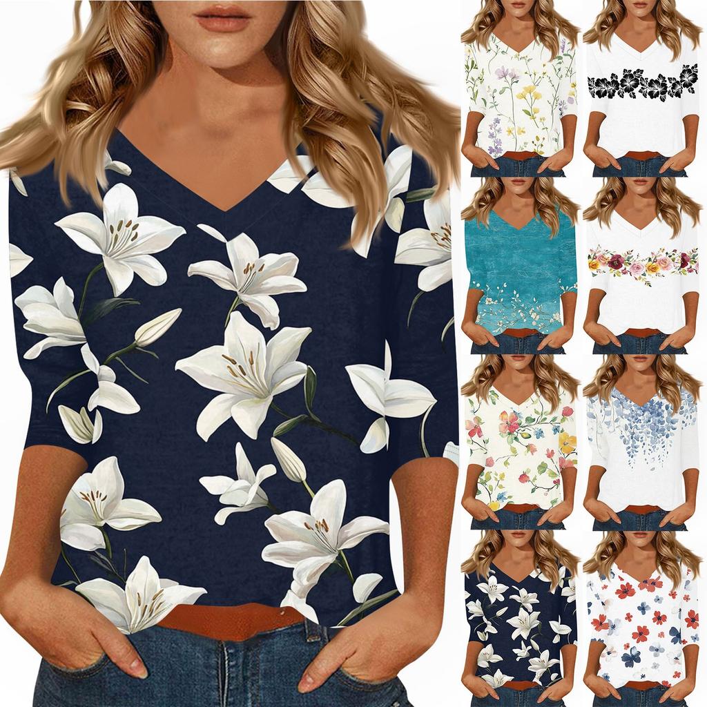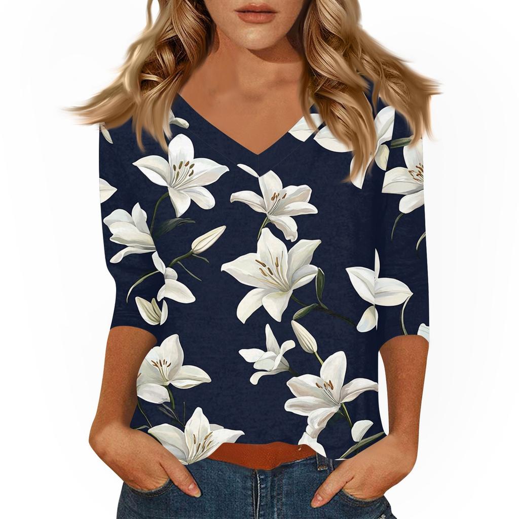Женские повседневные футболки с рукавом 3/4, топы с V-образным вырезом