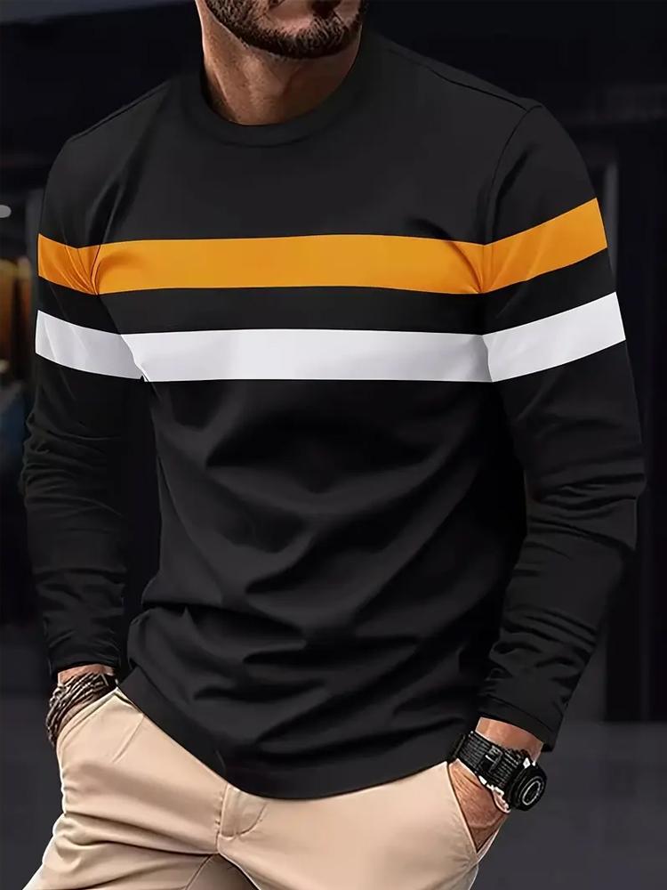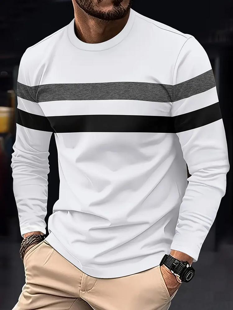 Мужская всесезонная футболка с длинным рукавом, футболка в горизонтальную полоску, обычного кроя, спортивный топ для тренажерного зала, бега, повседневной носки