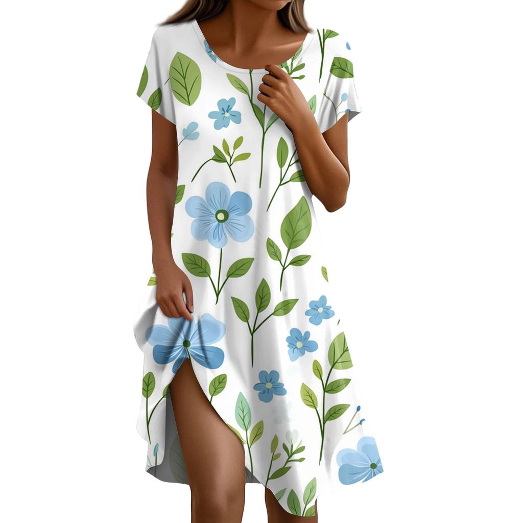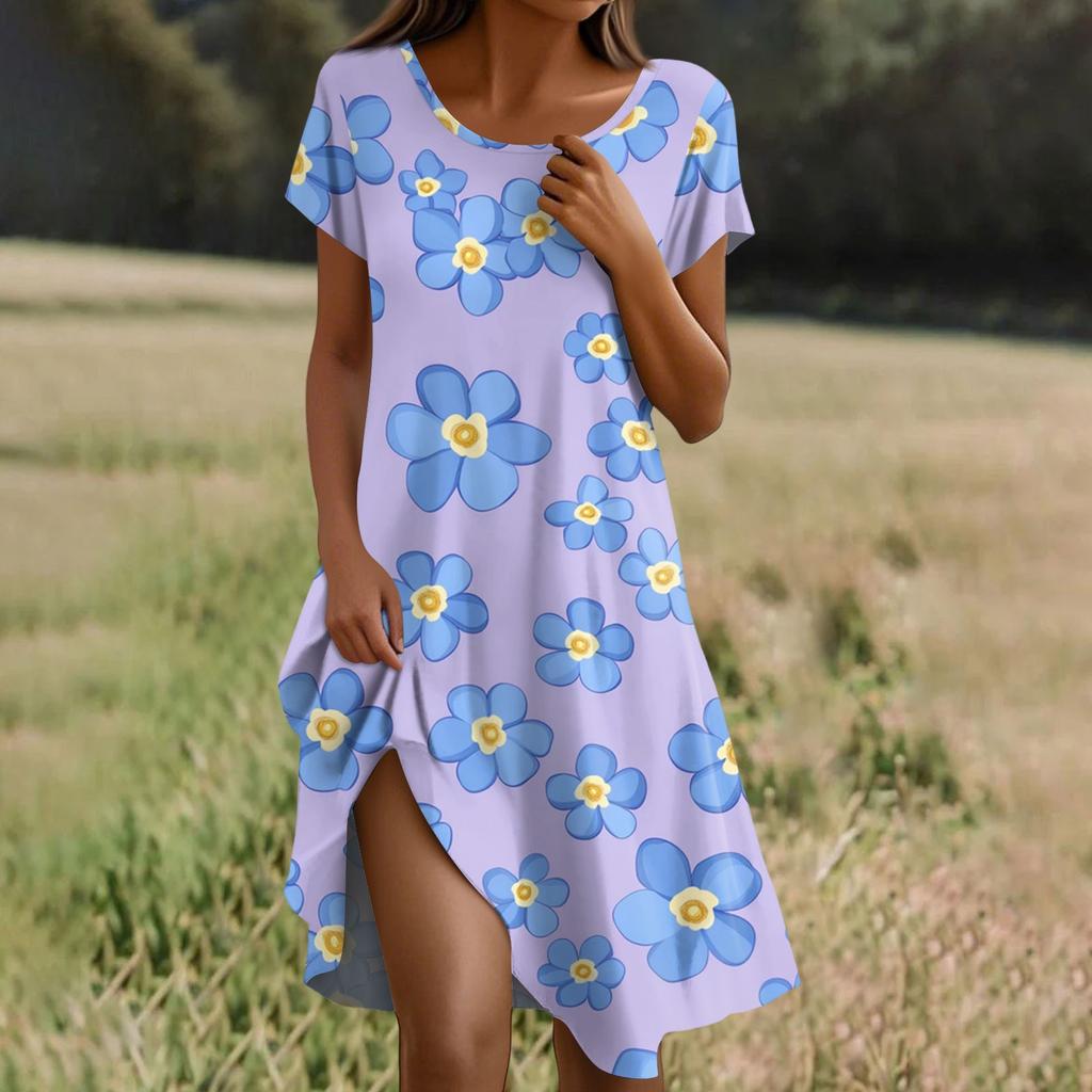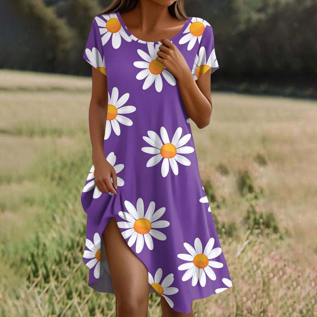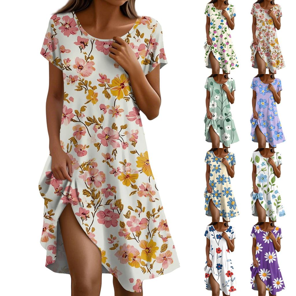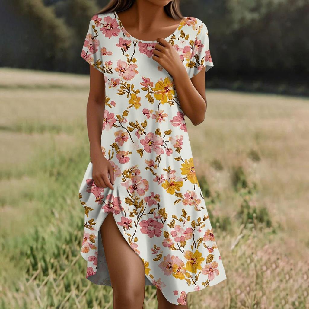 Платье в стиле бохо с коротким рукавом для женщин, повседневное, свободного кроя, летнее, сарафан с цветочным принтом и карманами