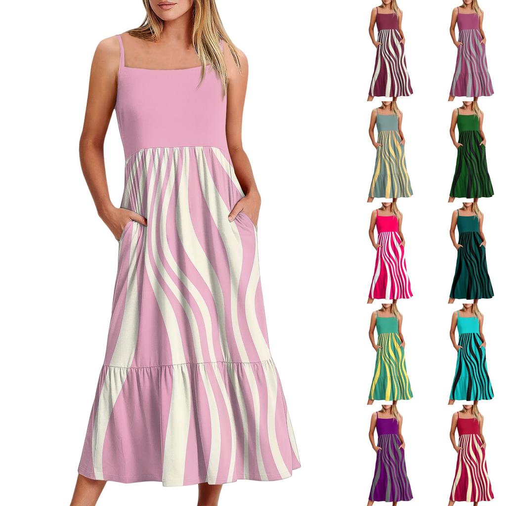 Женское длинное пляжное повседневное элегантное платье макси на тонких бретельках, полосатое неброское струящееся платье в стиле бохо, женское повседневное модное сексуальное платье с принтом, облегающее бедра, с юбкой с высокой талией, подчеркивает тонкую талию, удлиняет линию ног, делает вас выше и стройнее.. Юбка А-силуэта, освежающая и подходящая для всех форм тела, подчеркивающая красоту женщины.. Юбка пышная, а эффект верхней части тела элегантный.. Очень подходит для фотографий из отпуска.. Материал:Длина платья из полиэстера:Украшение до колен:Нет Что вы получаете: 1 стильное и удобное платье Примечание.:Из-за возможных физических различий между различными мониторами фотография товара носит иллюстративный характер и может не точно отражать фактический цвет полученного товара. Мы можем гарантировать, что общее изображение на фотографии является точным, однако могут быть различия в том, как выглядит товар во время носки.. Это зависит от других физических переменных, например,. личный размер тела, форма тела, пропорции конечностей, рост и т. д..