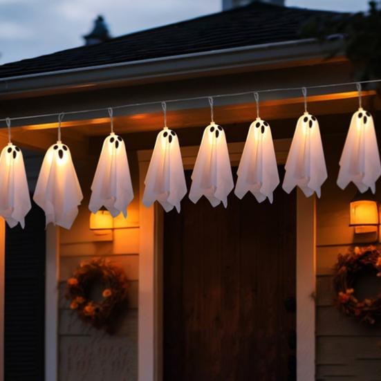Полный комплект: Получите ремешок-«призрак» с 10 Хэллоуинскими уличными украшениями, включающими очаровательные светящиеся призрачные орнаменты, идеально подходящие для продавцов на вечеринках и праздничного или патио-декора.
