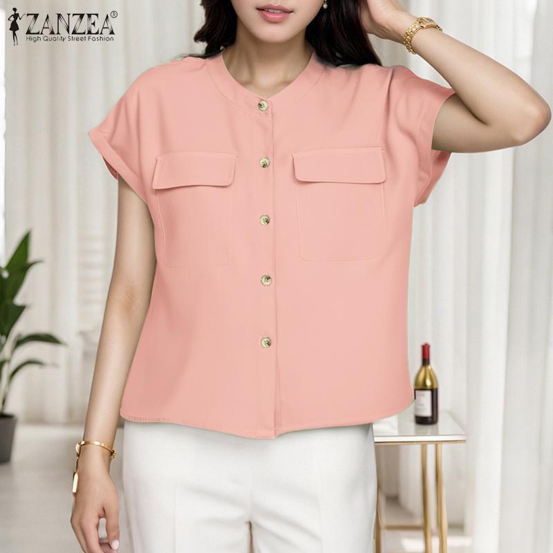 ZANZEA Женская летняя блузка свободного покроя с круглым вырезом и коротким рукавом