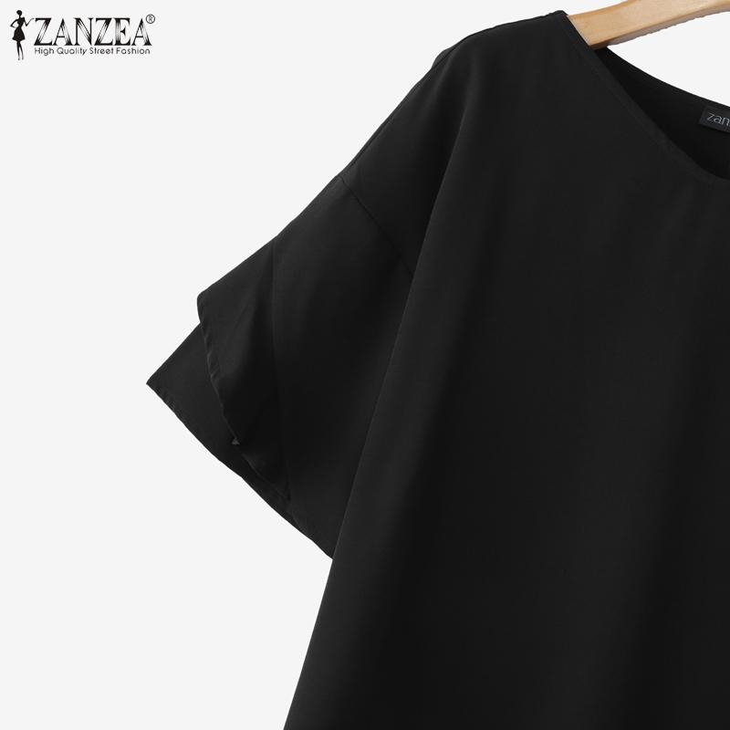 ZANZEA Женская повседневная однотонная блузка с круглым вырезом и коротким рукавом
