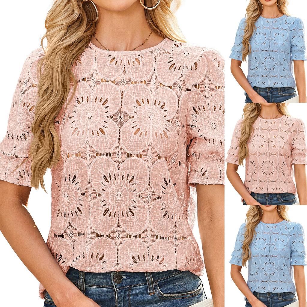 Женская модная повседневная рубашка с короткими рукавами и кружевом-пузырем — купить товар онлайн с бесплатной доставкой по всему миру!